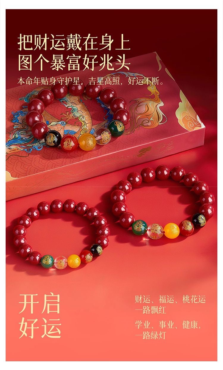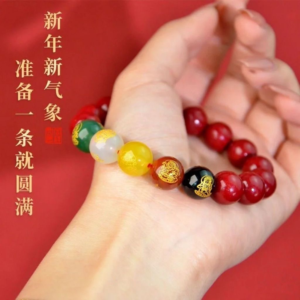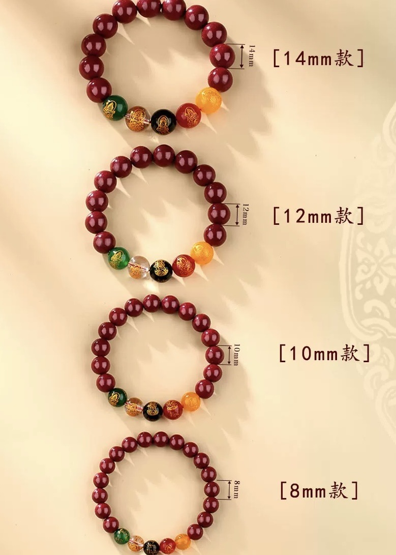 12mm five gods of wealth cinnabar bracelet