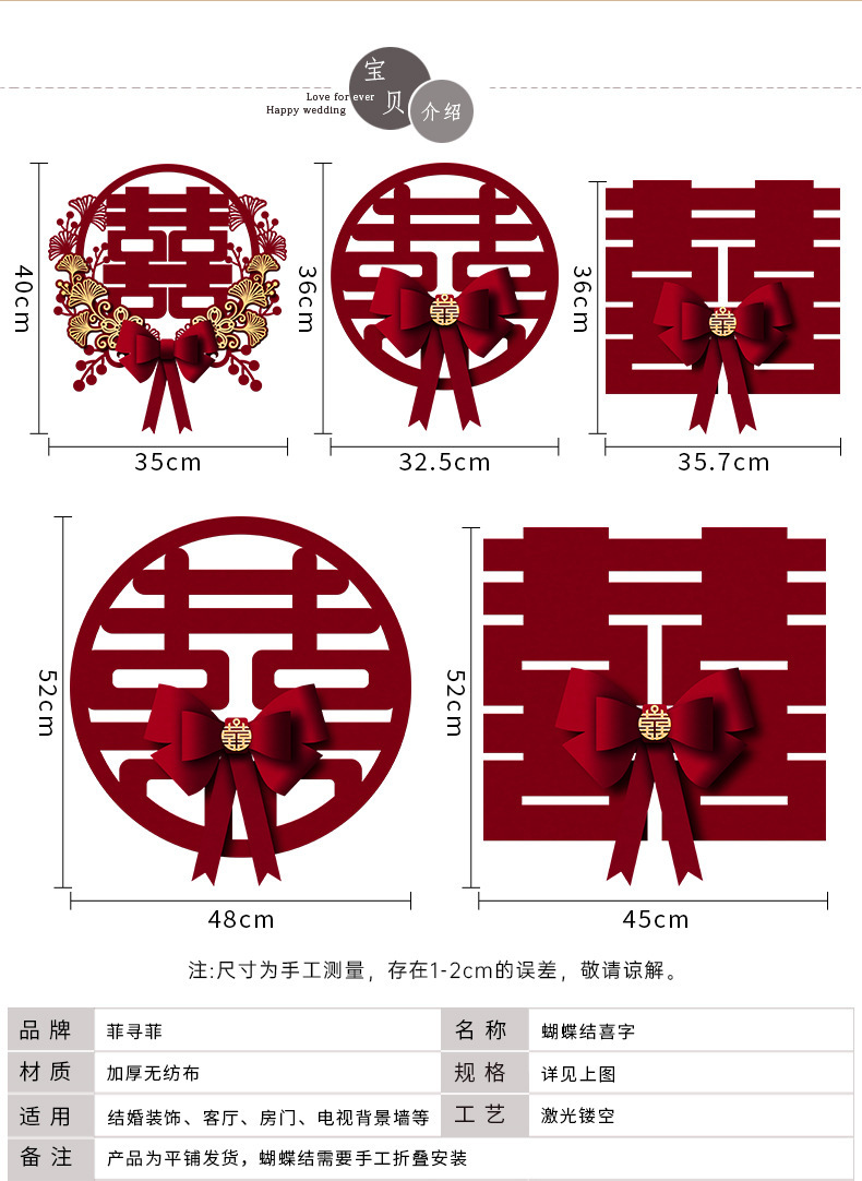 | thickened wedding stickers [applicable to door/bedroom door/background wall, etc.]] | ¥12.91 | 622 piece available |