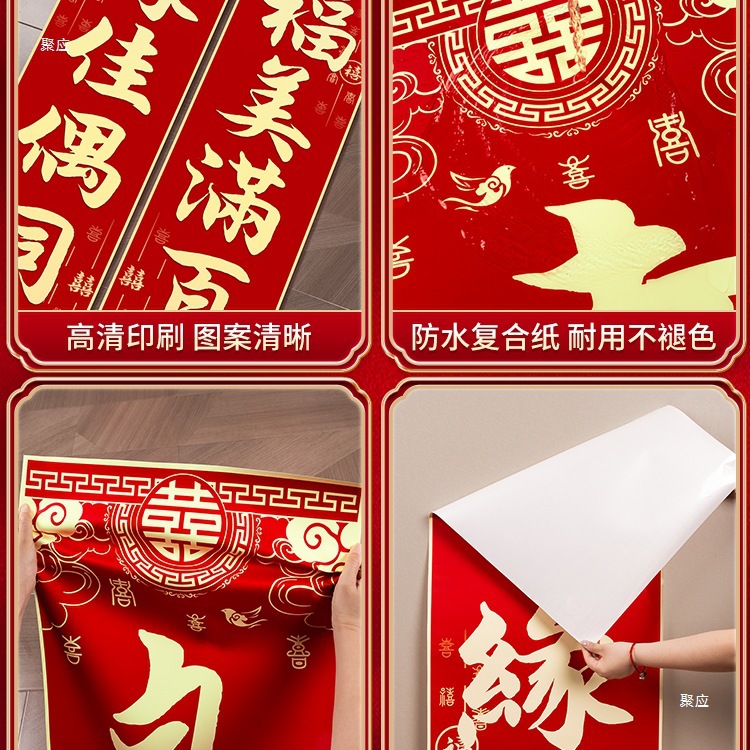 [3 m] merry matrimony gold word couplet + xi word 2 pieces paste traceless