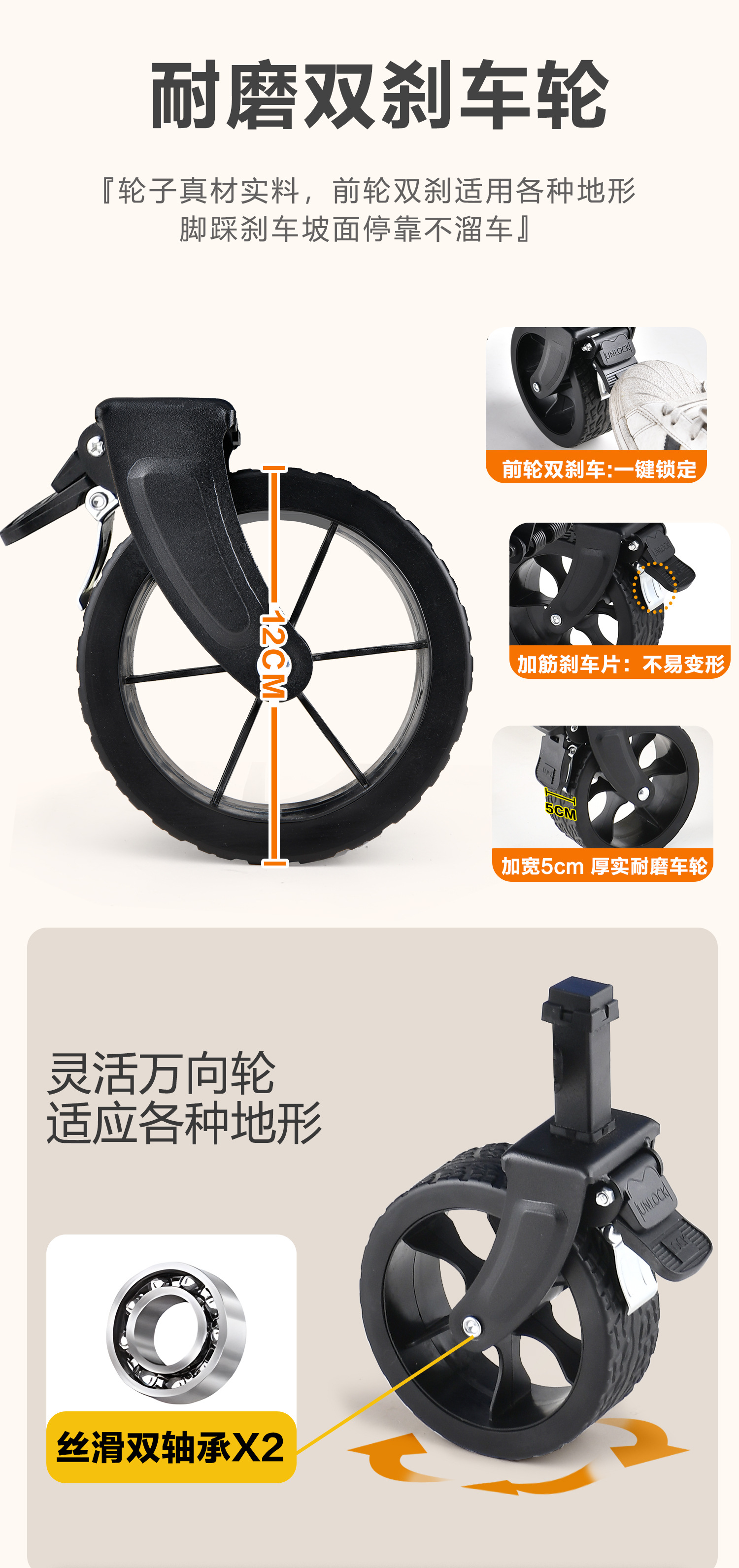 5-inch tank wheel [cream and coffee-colored] double brake