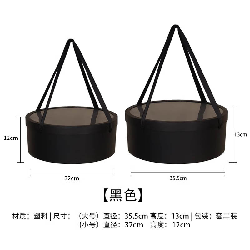 two sets of black plastic round box (with rope handle) each size