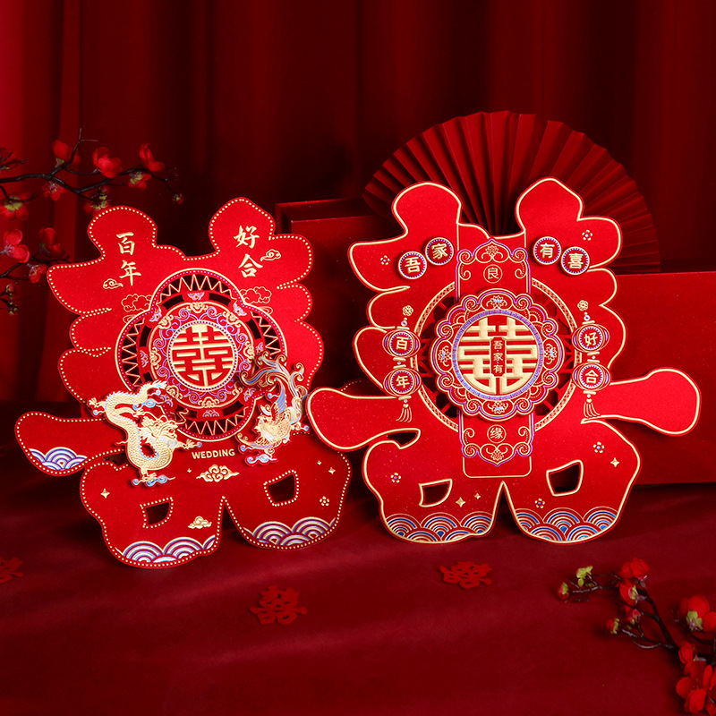 gold leaf three-dimensional happiness -- 50# hi dragon and phoenix 1 pair of 200g