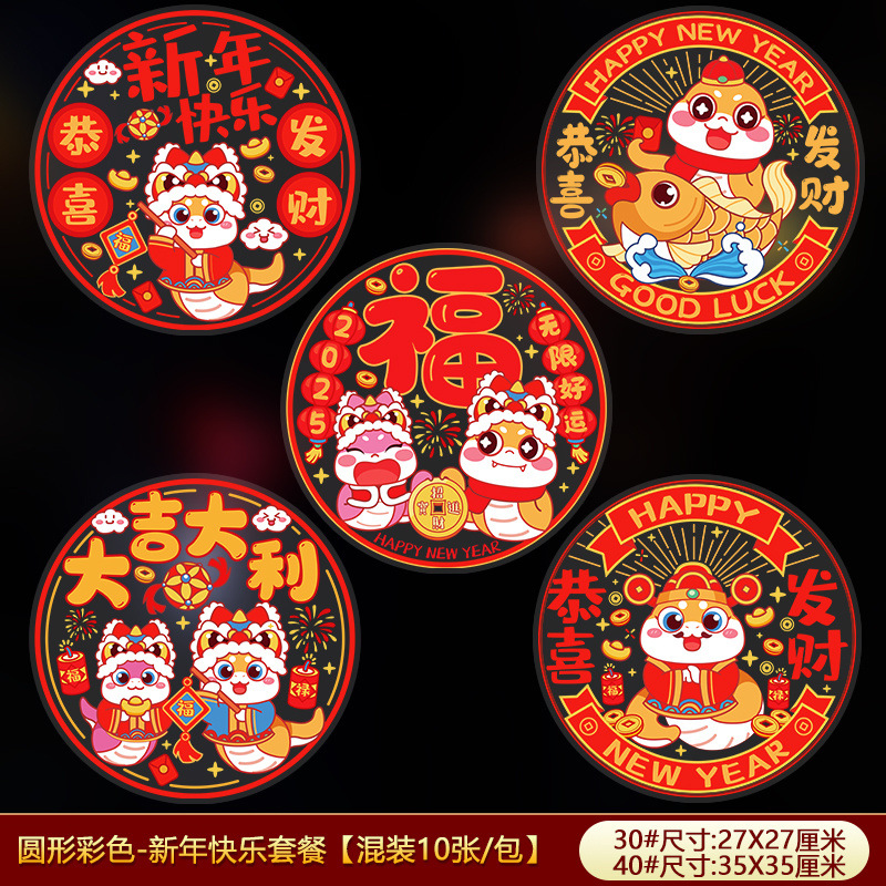 snake year static sticker [package a] 10 red mixed-[30#] 2024 new traceless static sticker