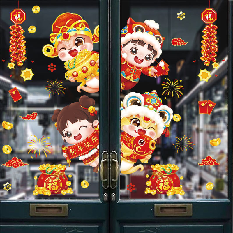 happy new year + double blessings and spring festival (static sticker)