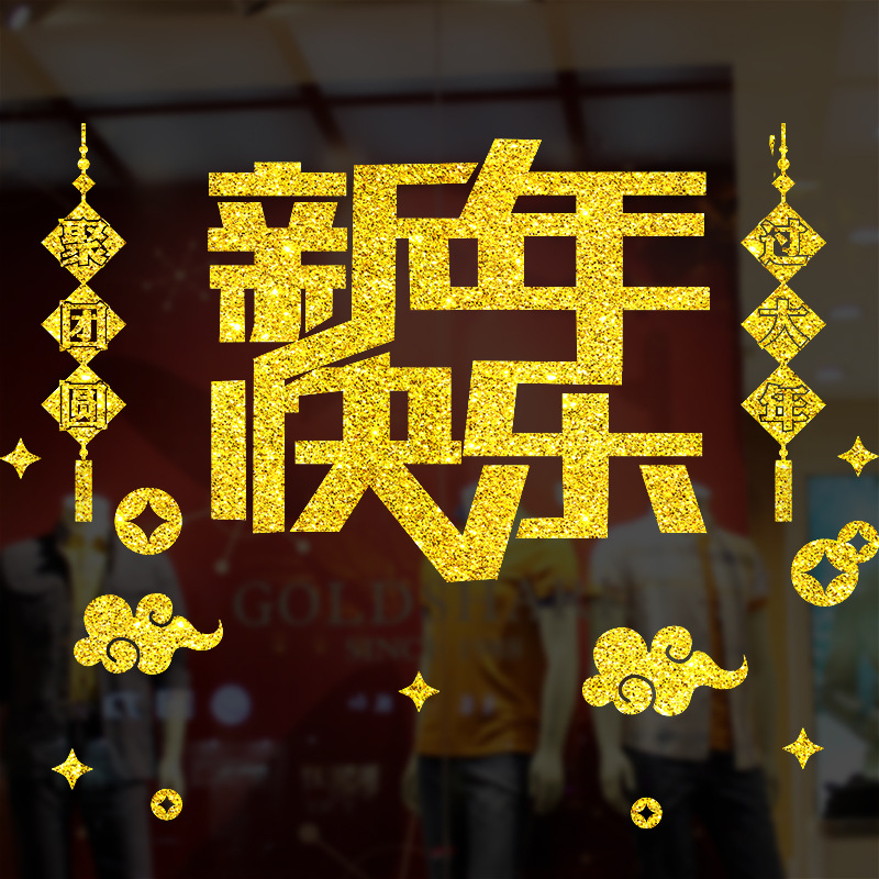 xd153 gold powder seamless adhesive new year window stickers 50 * 60cm