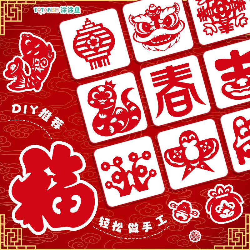 new year paper-cut for window decoration 60 pieces with scissors [17 x17cm]]