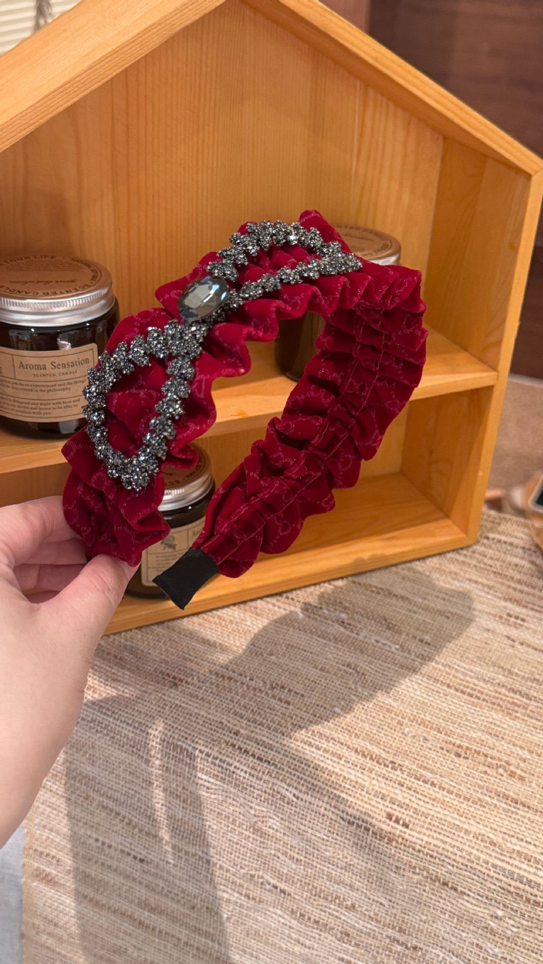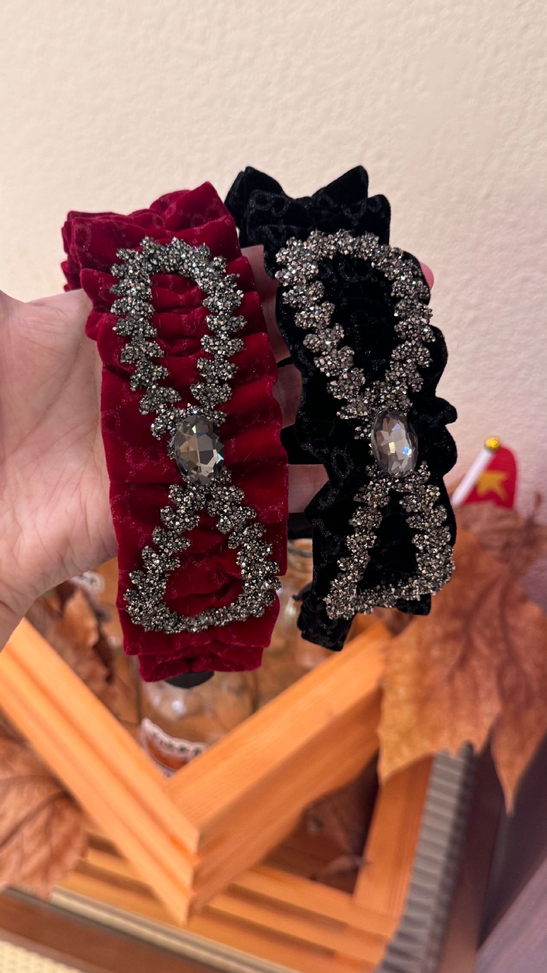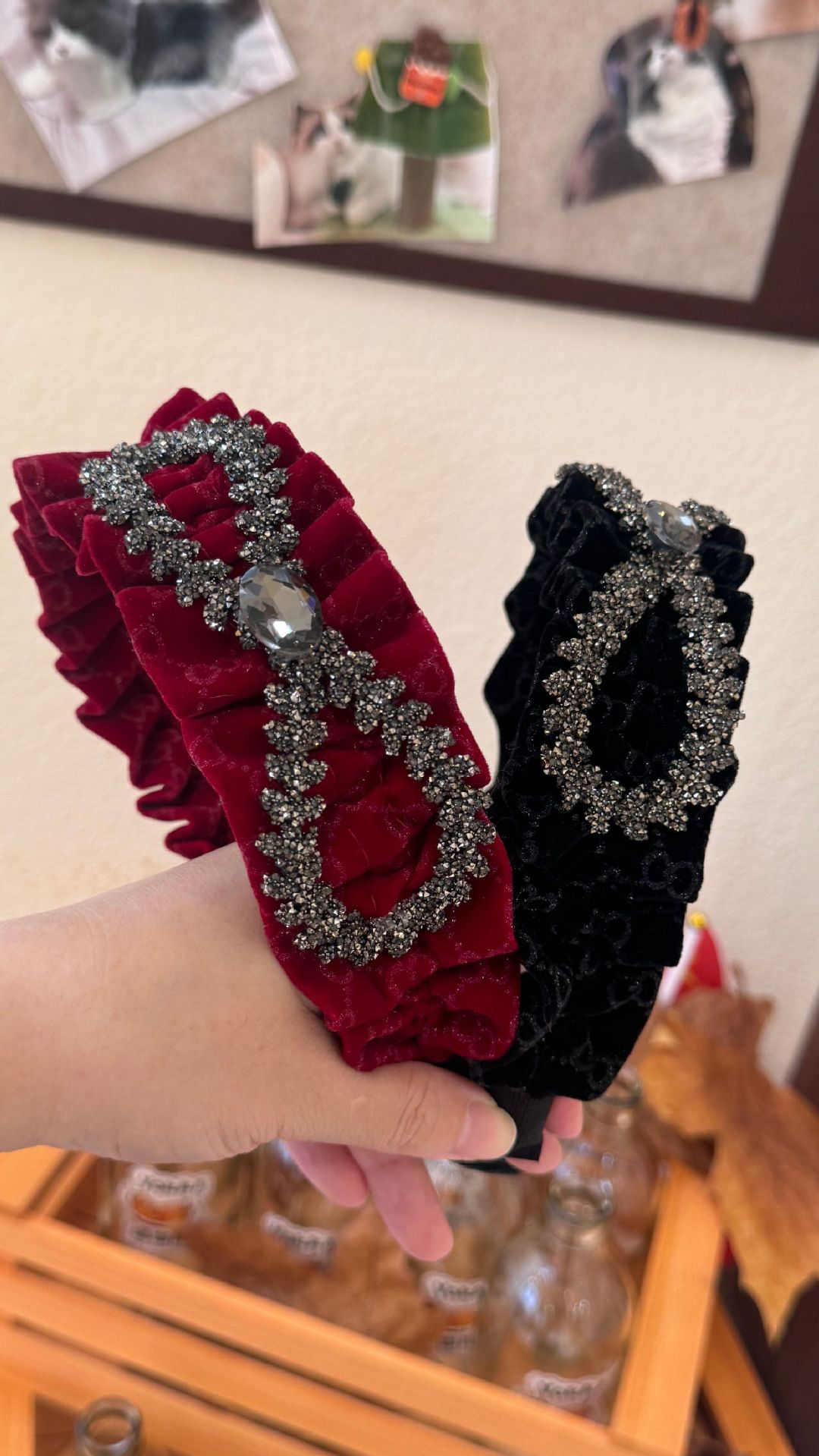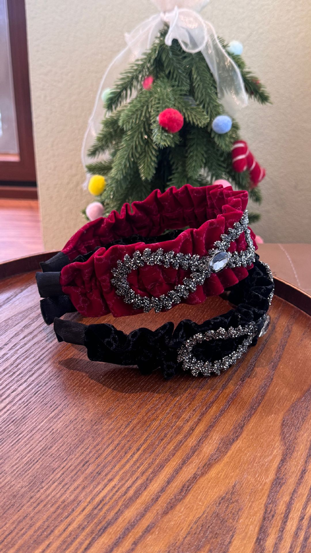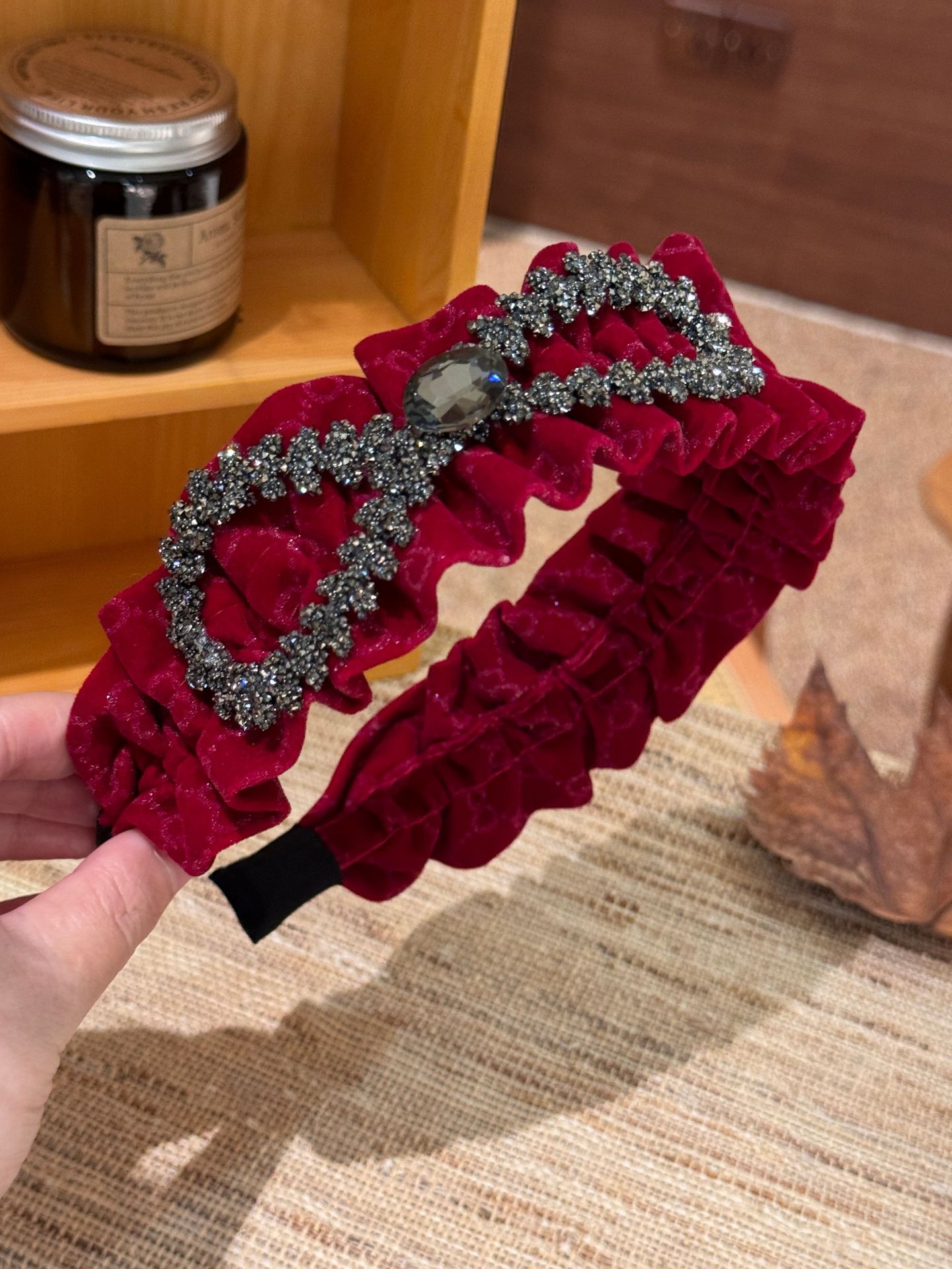 wine red velvet bow headband (width 6cm)