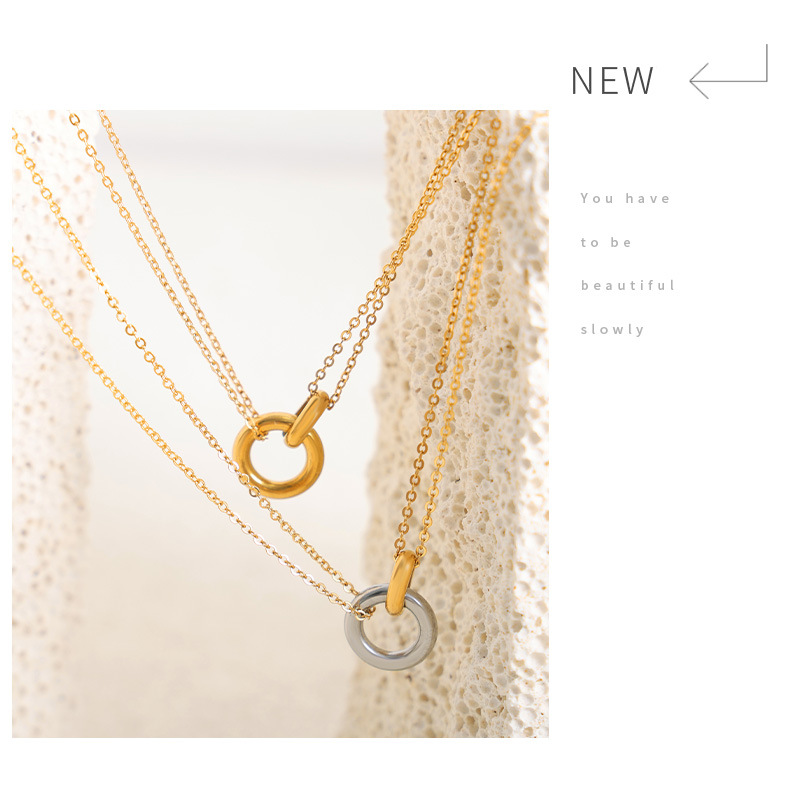 p1546-gold steel necklace-42 + 7cm