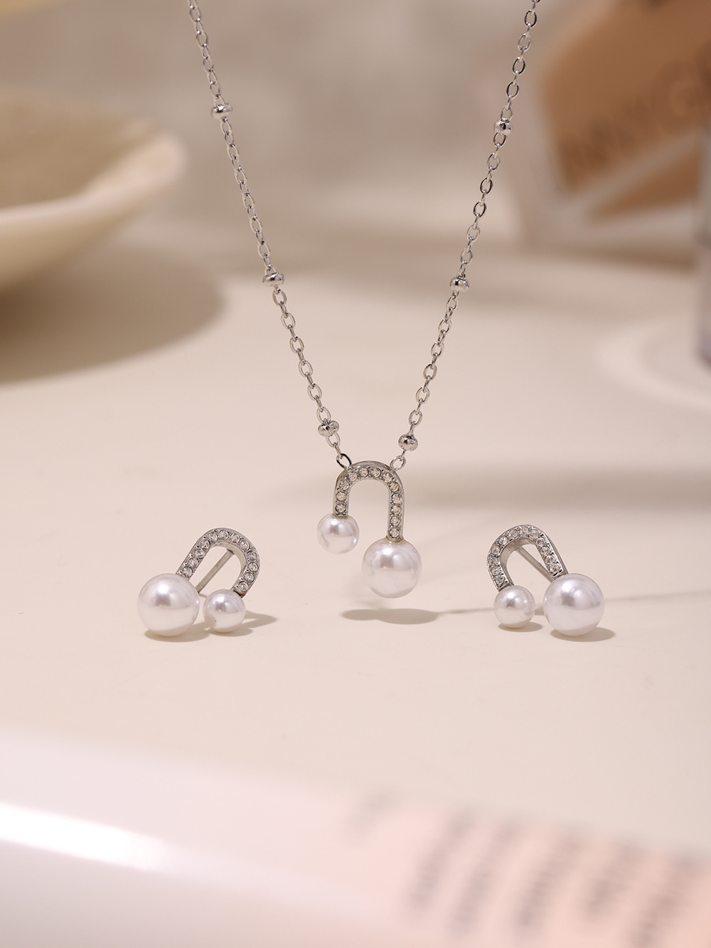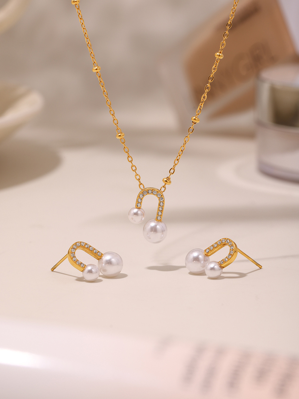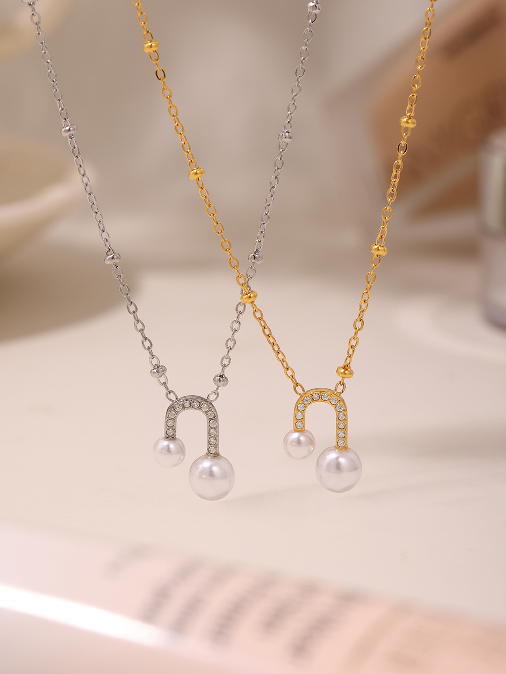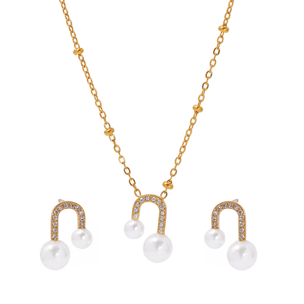 txp231-steel zircon shell pearls necklace 40 + 5cm