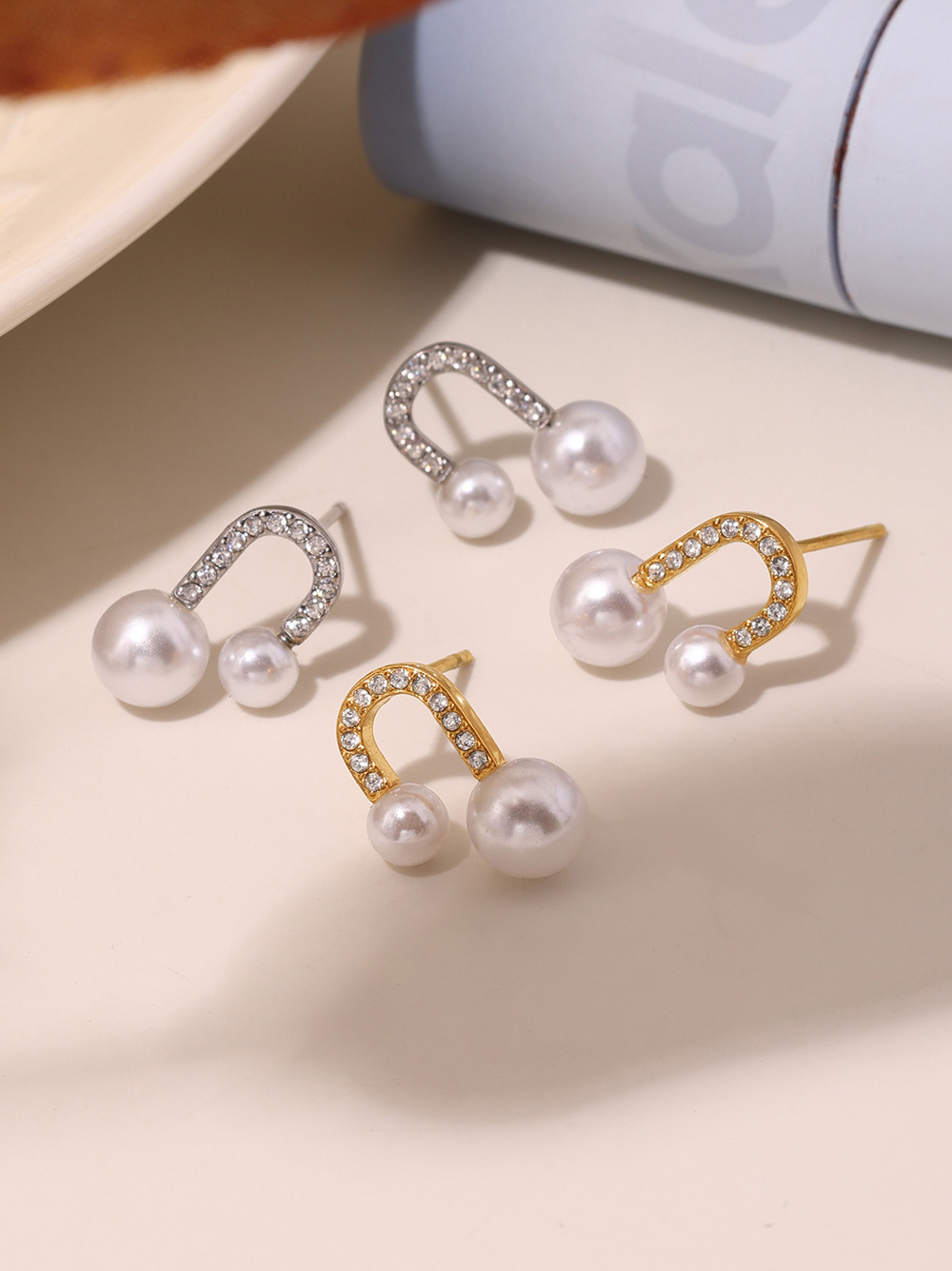 txf231-steel zircon shell pearl earrings