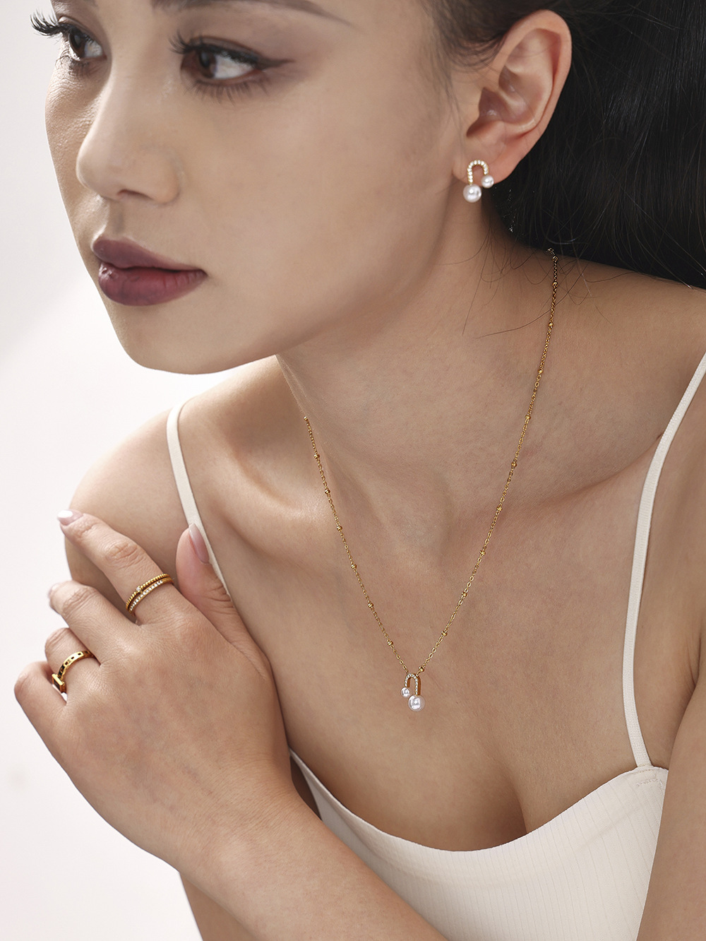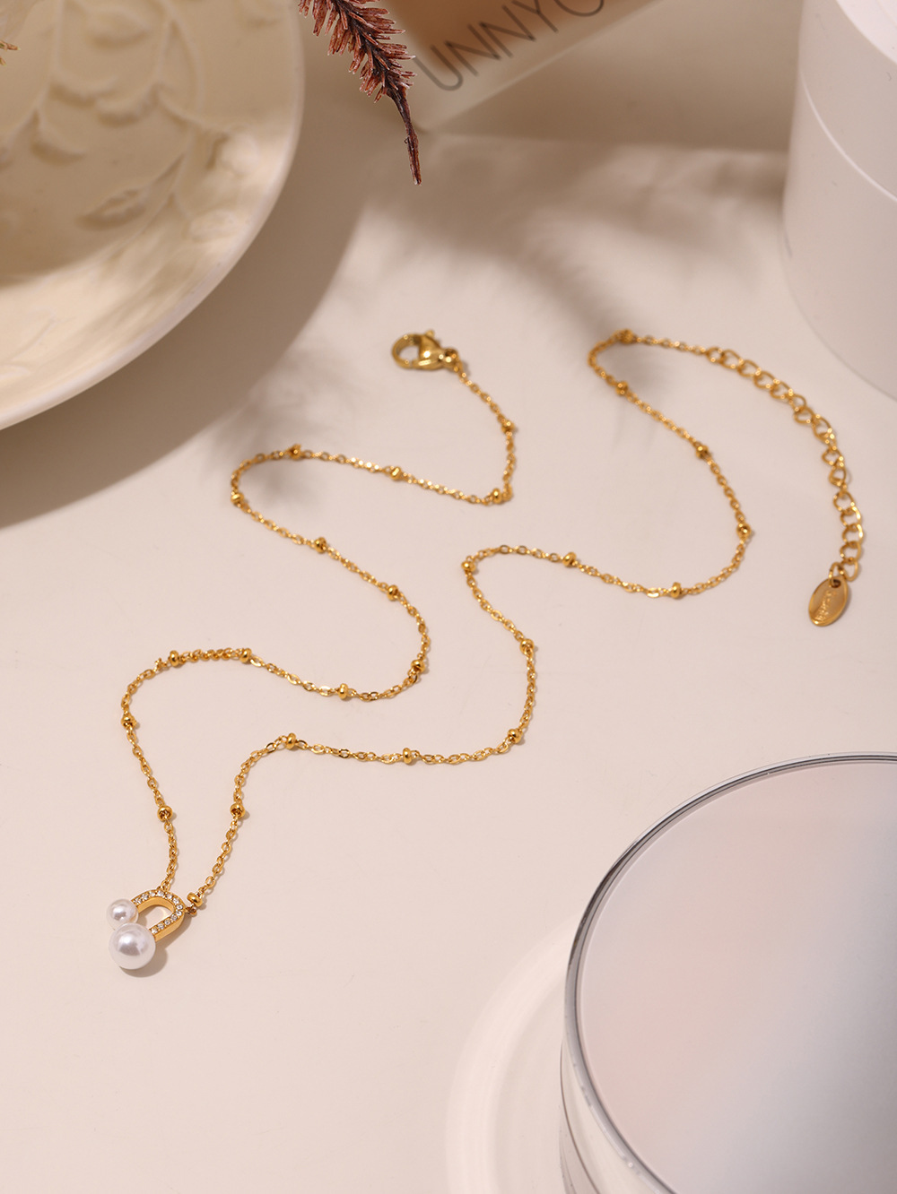 txp231-gold zircon shell pearls necklace 40 + 5cm