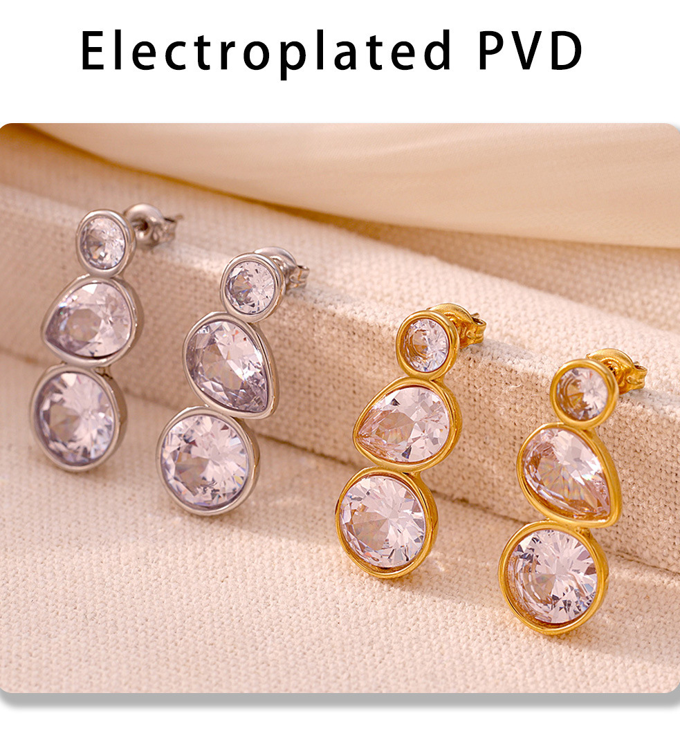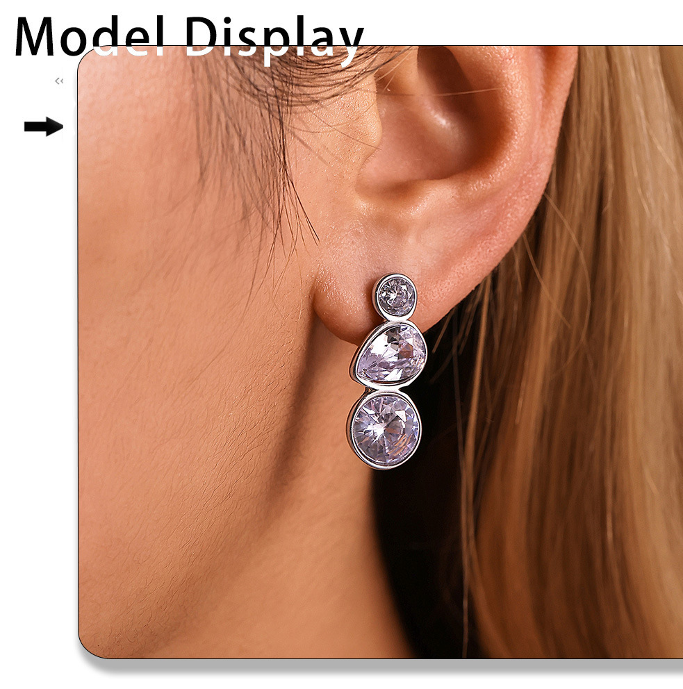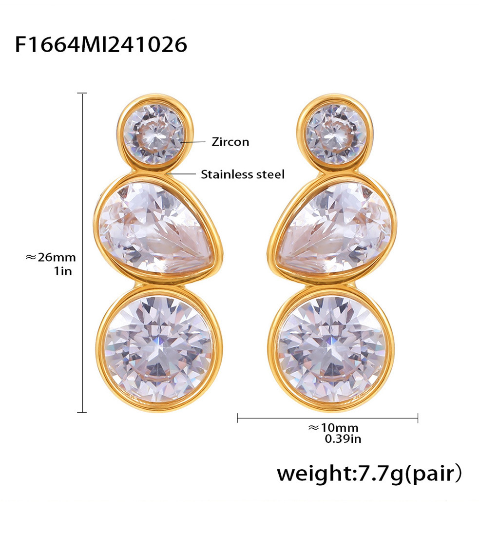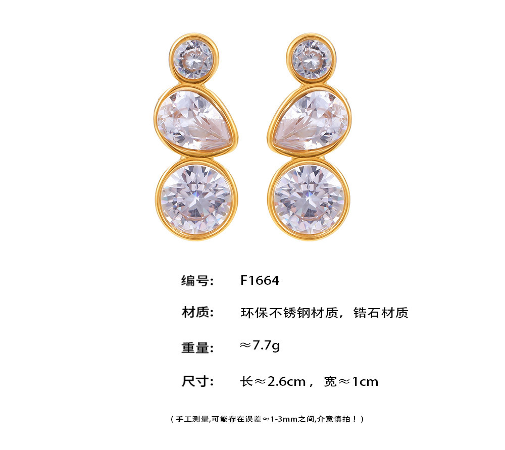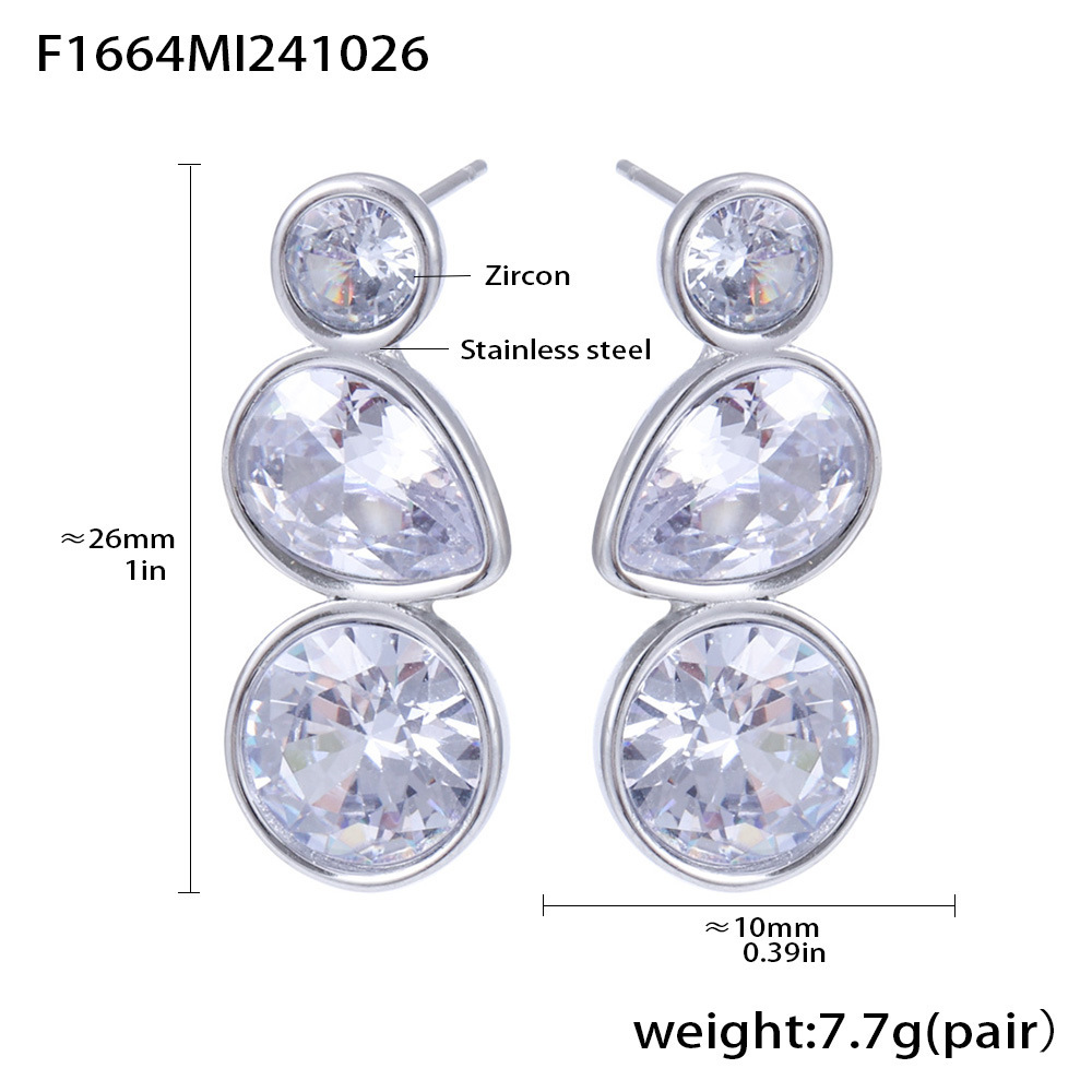 f1664-steel water drop zircon earrings