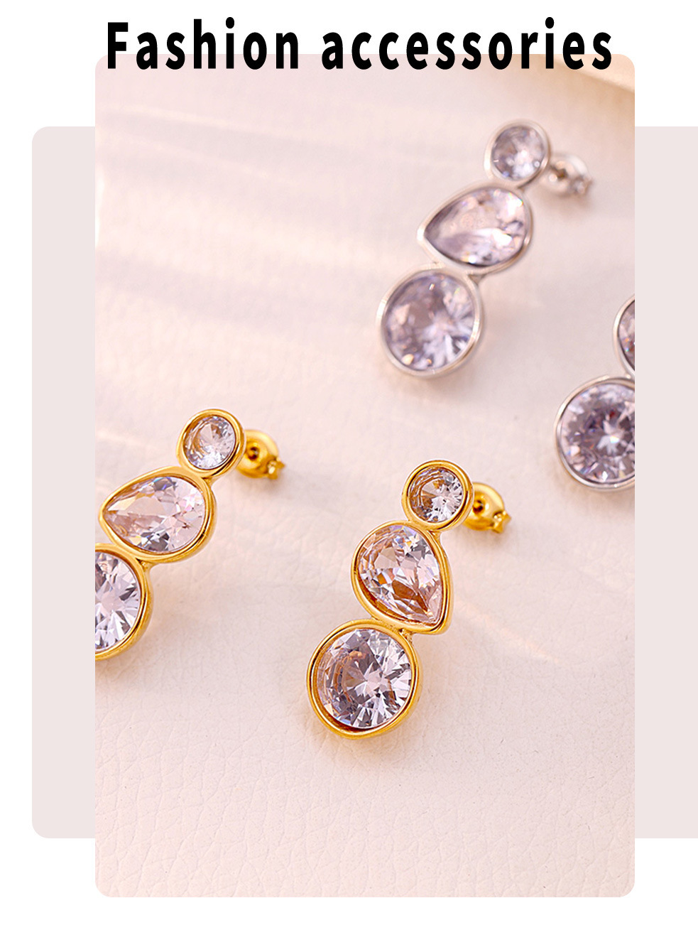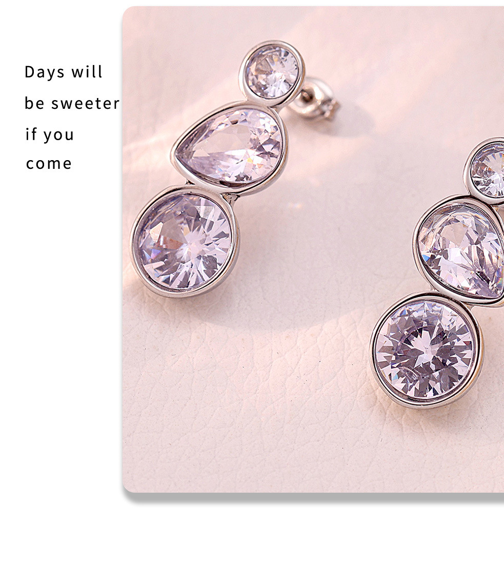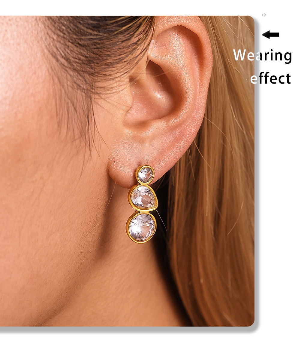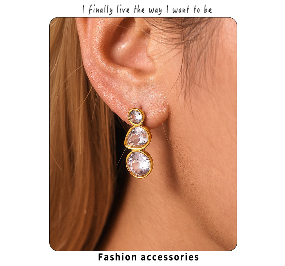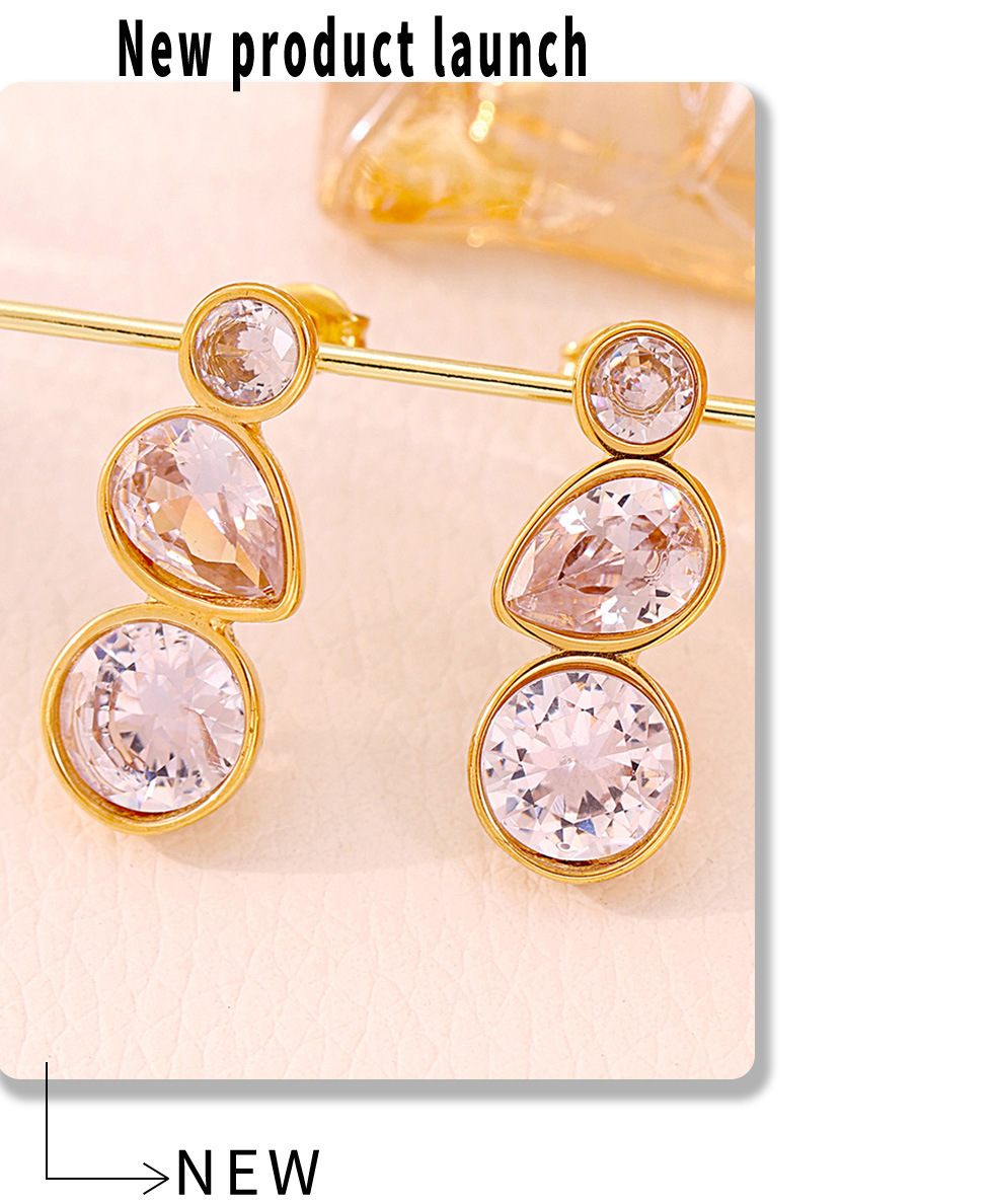 f1664-steel water drop zircon earrings