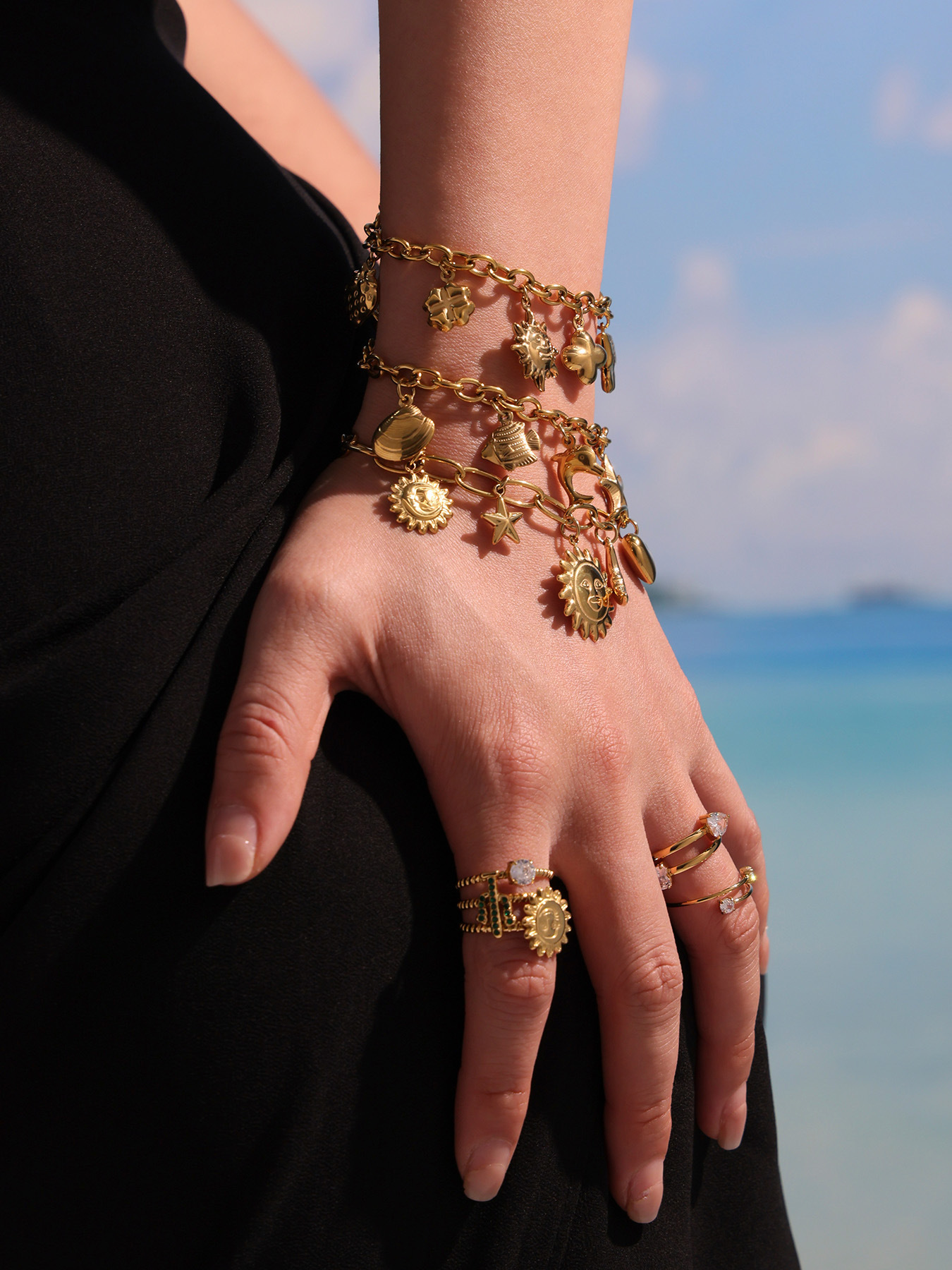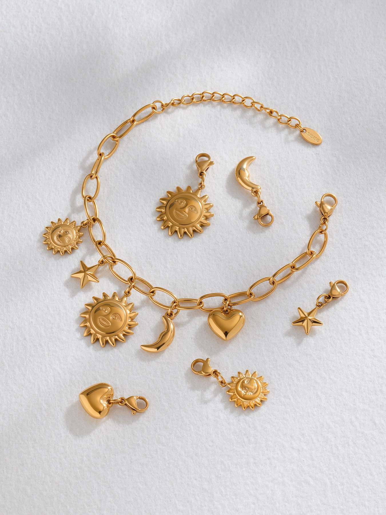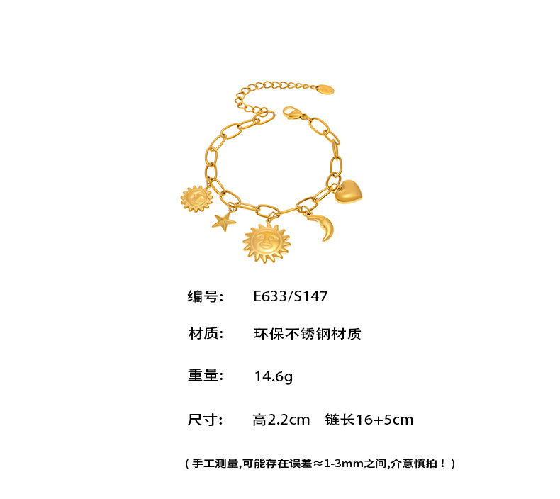 e633-gold diy sun moon star bracelet 16 + 5cm