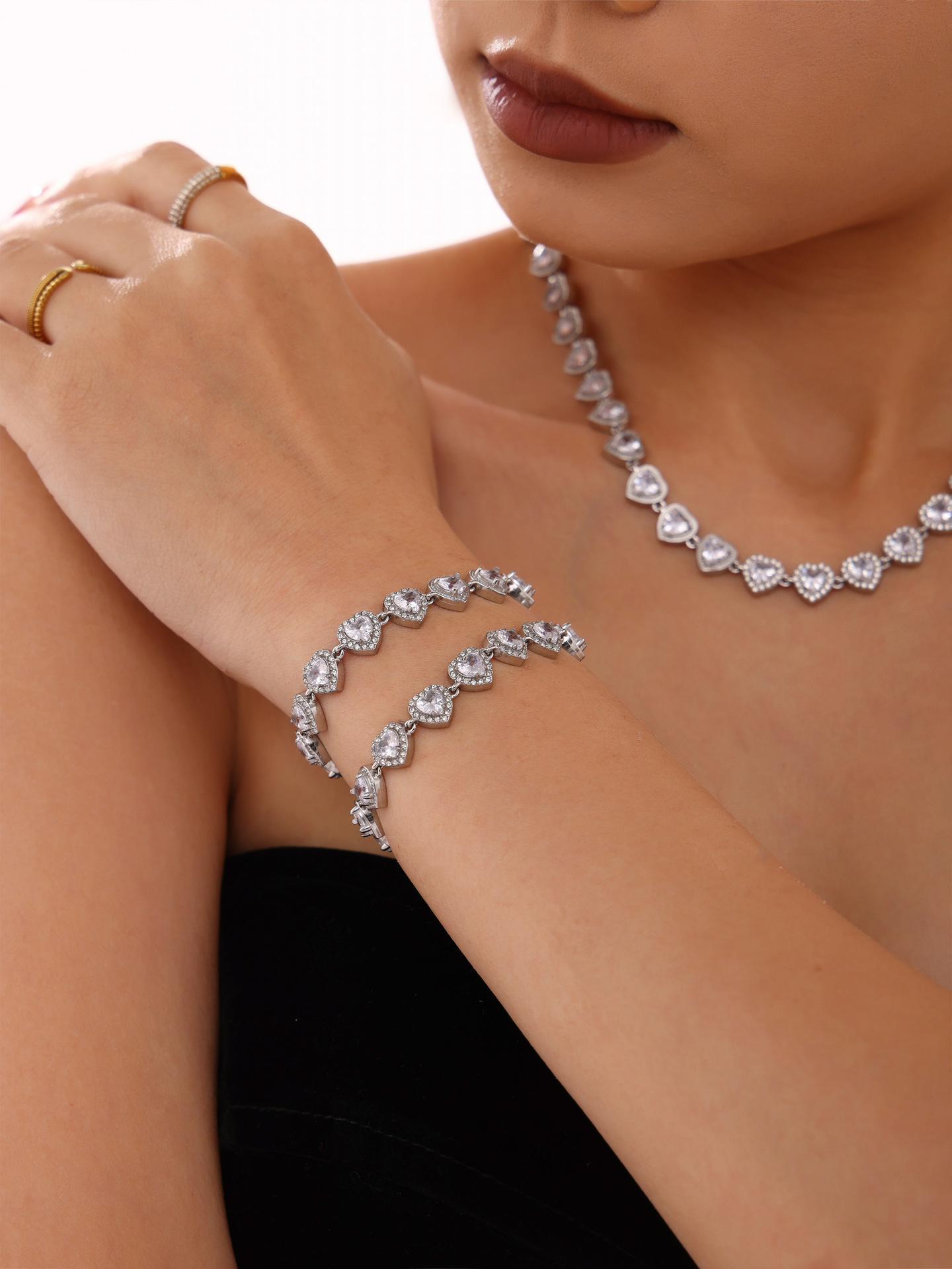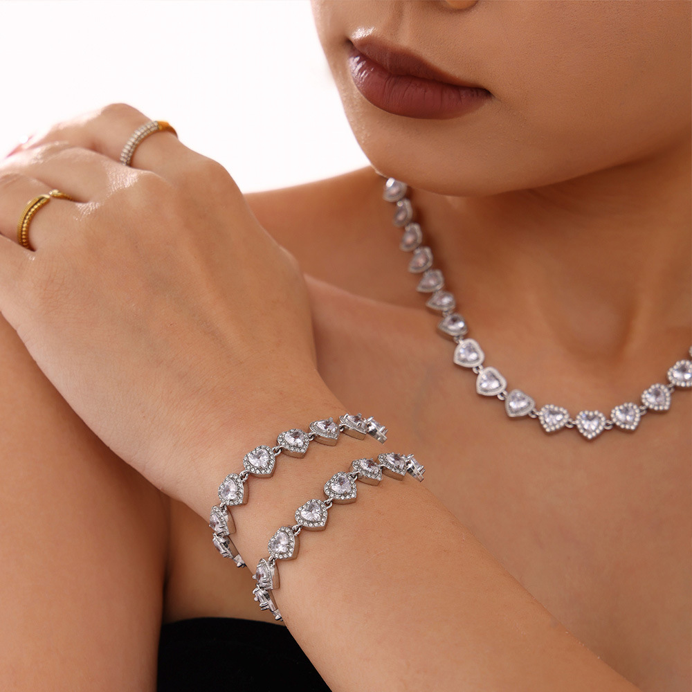 txe205-steel loving heart zircon bracelet