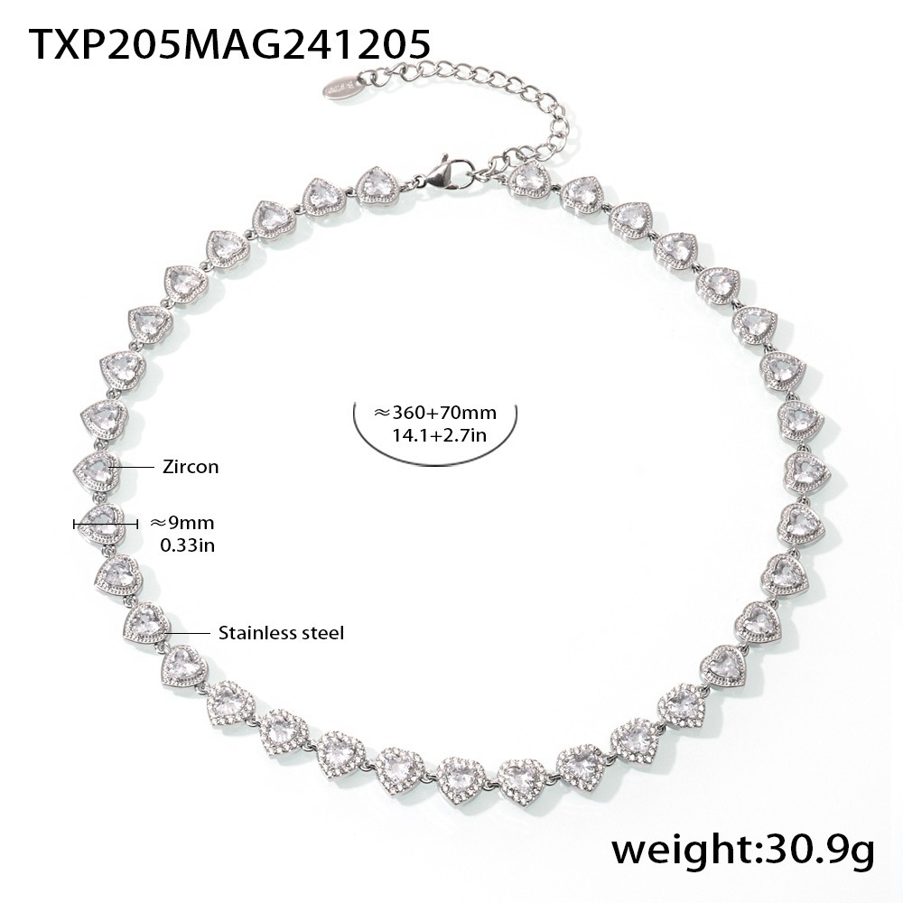 txp205-steel loving heart zircon necklace
