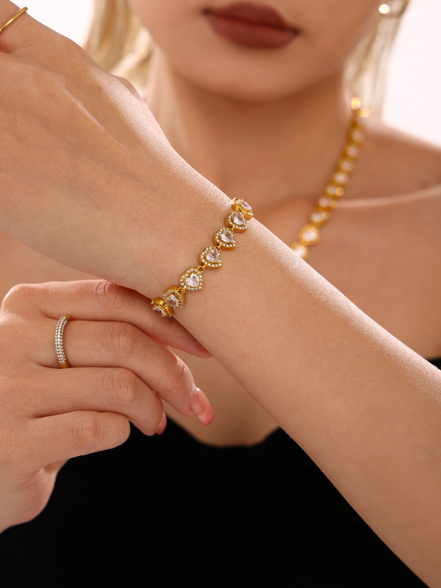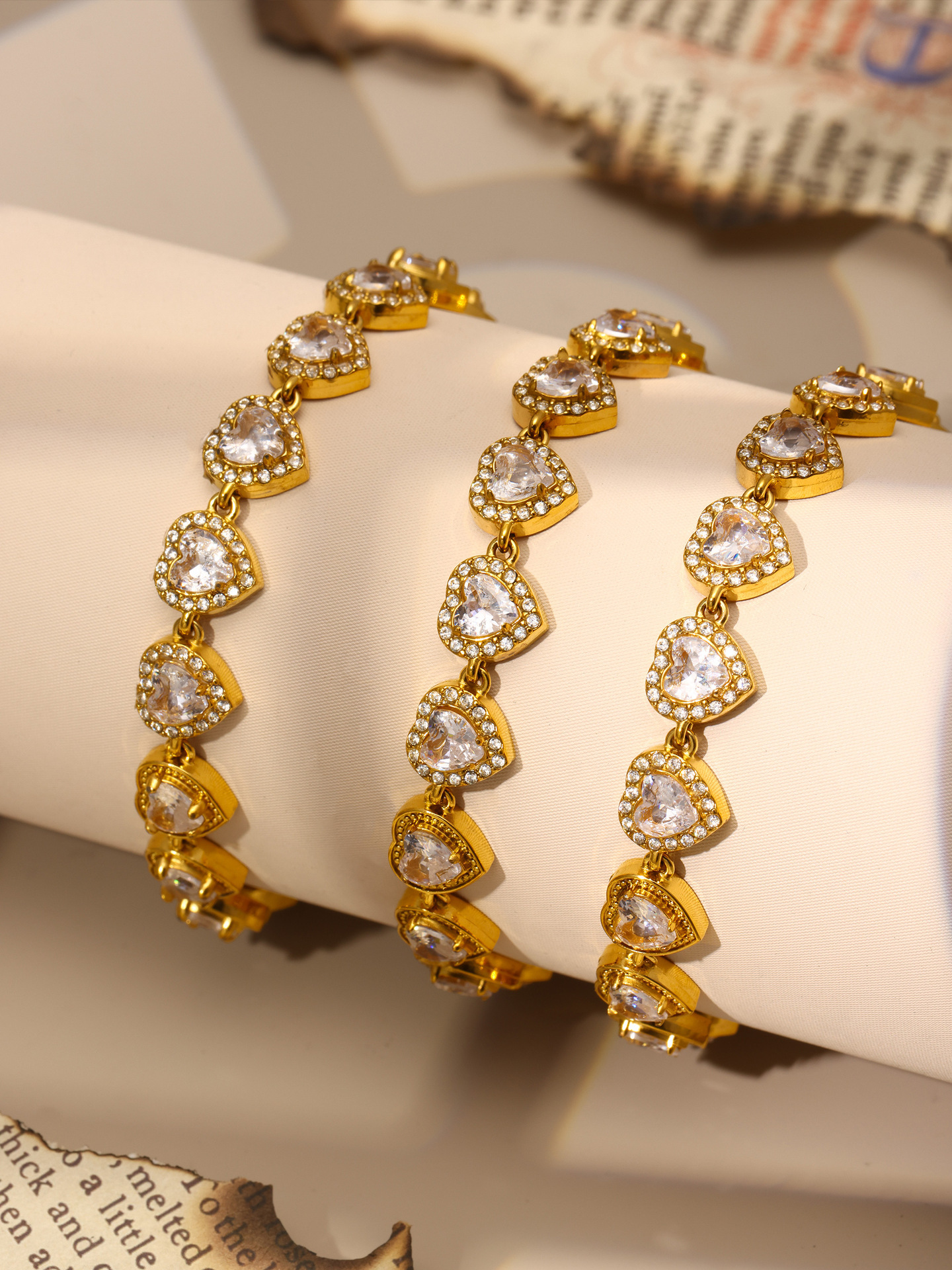 txe205-gold loving heart zircon bracelet