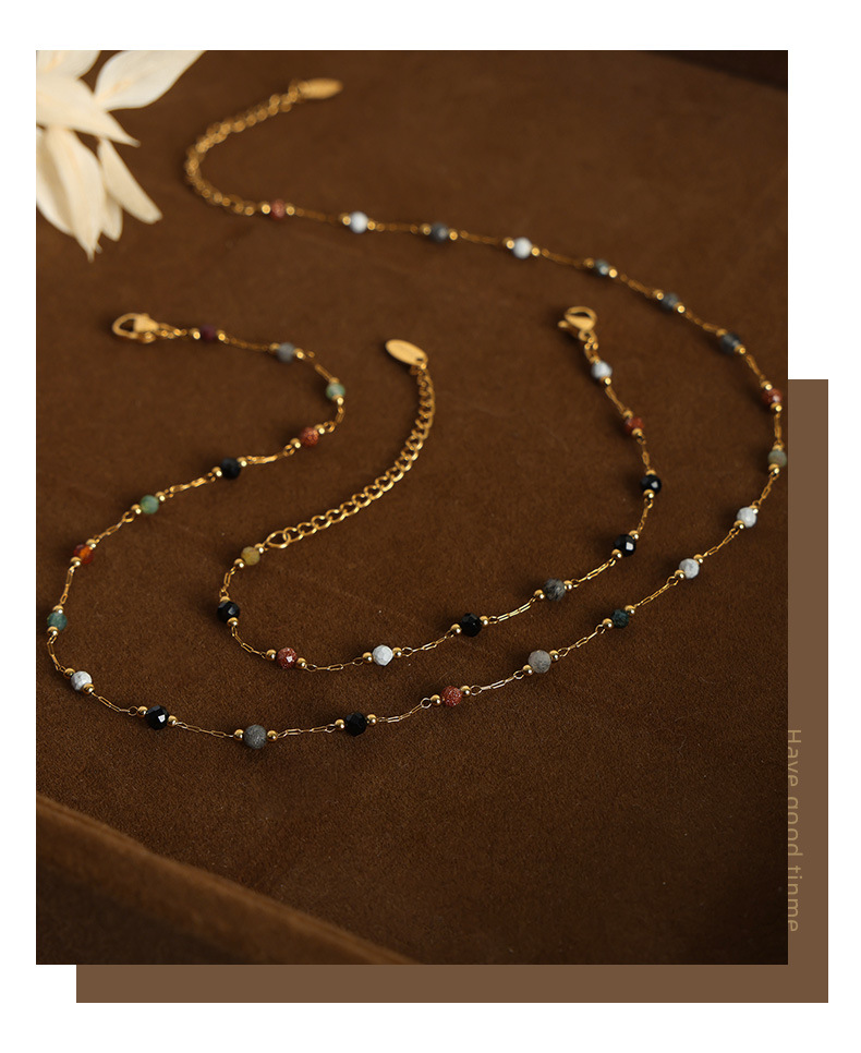 p379-natural stone steel necklace-40 + 5cm