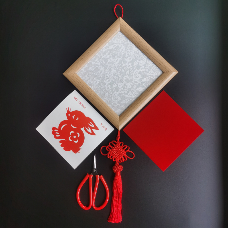 outer frame 18.5*18.5cm chinese knot frame + diy13 * 13cm chinese zodiac sign of rabbit + scissors