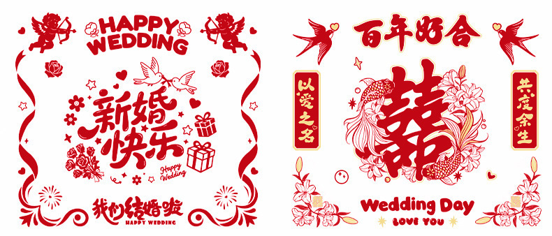 flocking static sticker-happy wedding 1 set