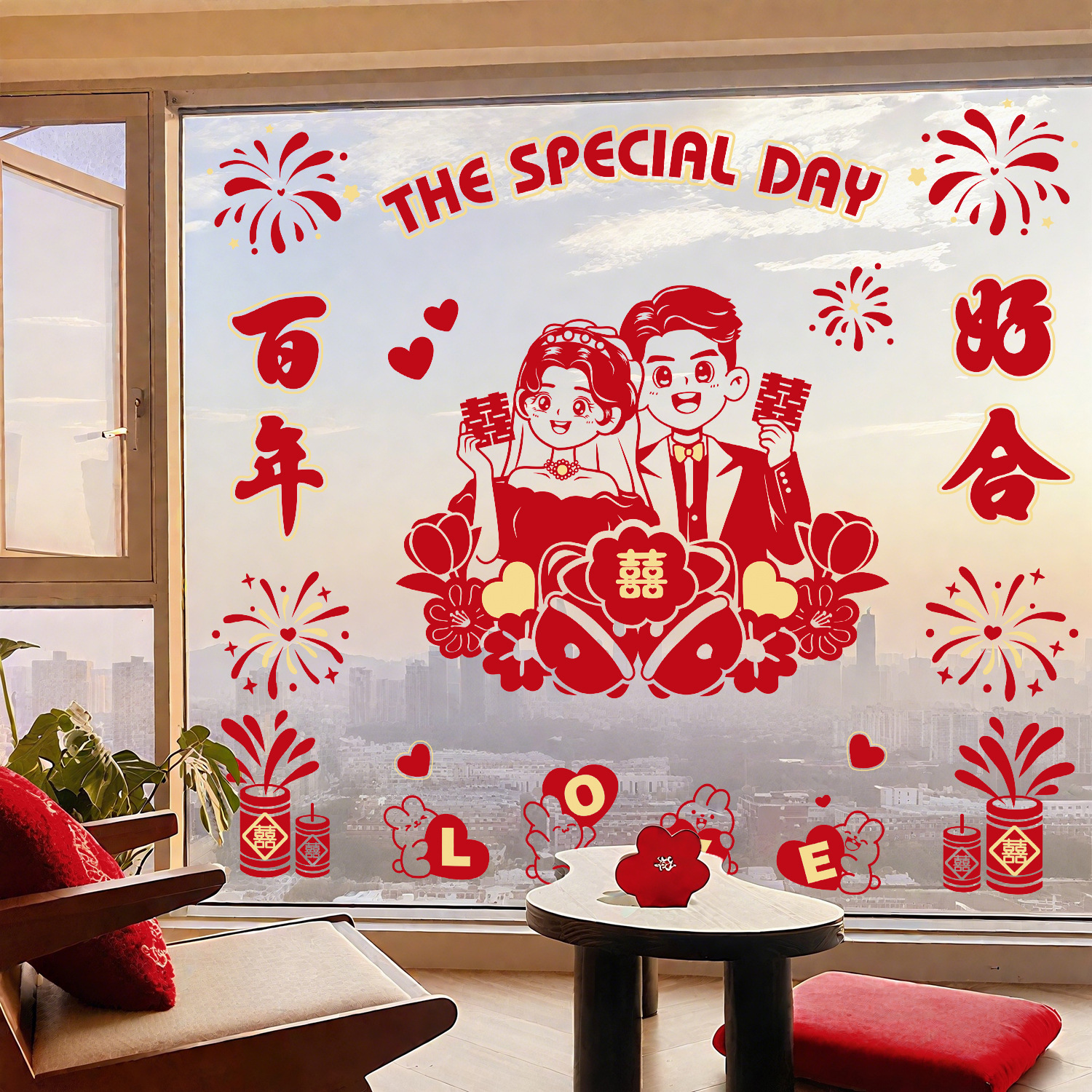 flocking static sticker-happy wedding [with adhesive] as main image