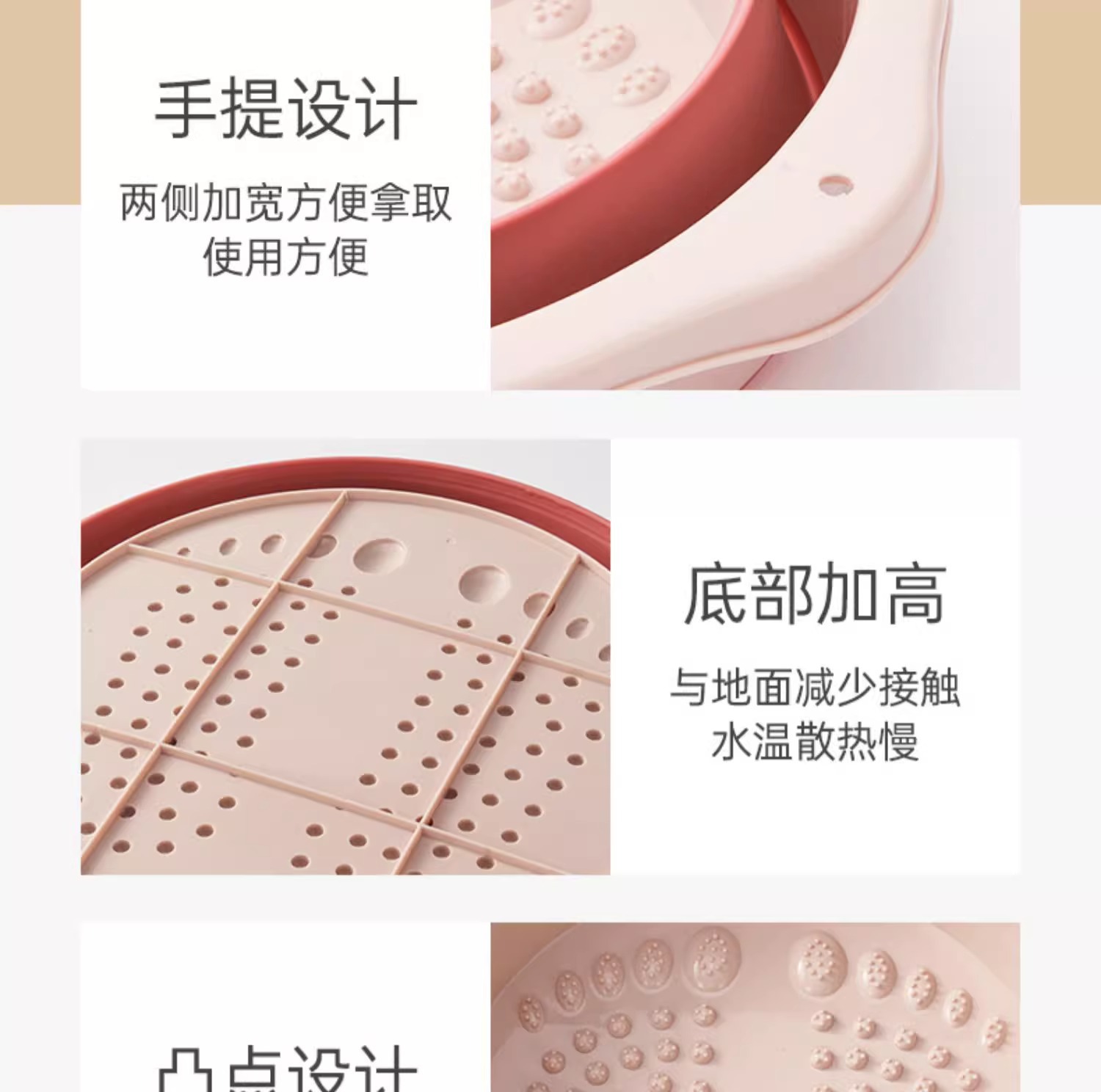 folding foot bath tub-pink