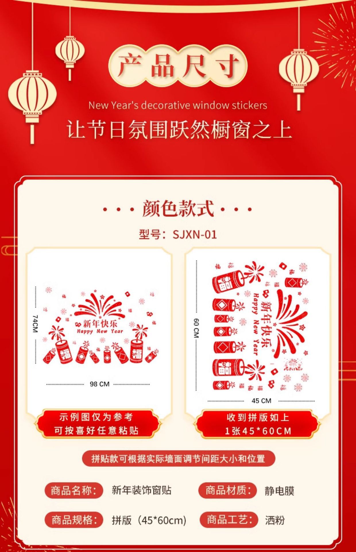 34. new year firecrackers [static glitter, double-sided same color] [static glue-free double-sided same color]]