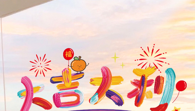 rainbow new year electrostatic stickers [35 * 35cm] + fortune