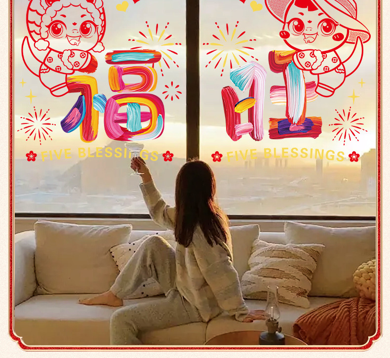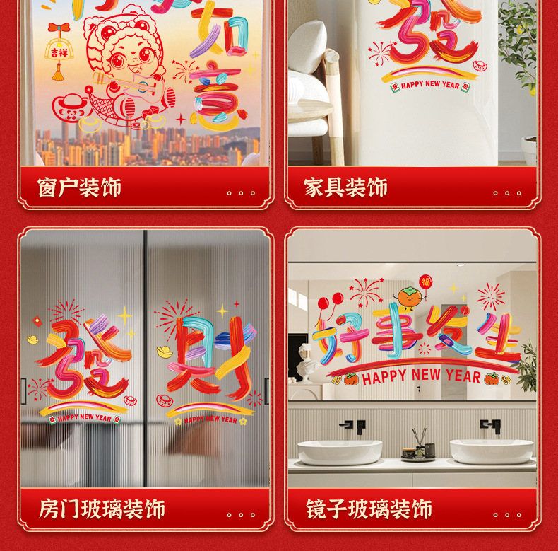 rainbow new year electrostatic stickers [35 * 35cm] zodiac fu + zodiac wang