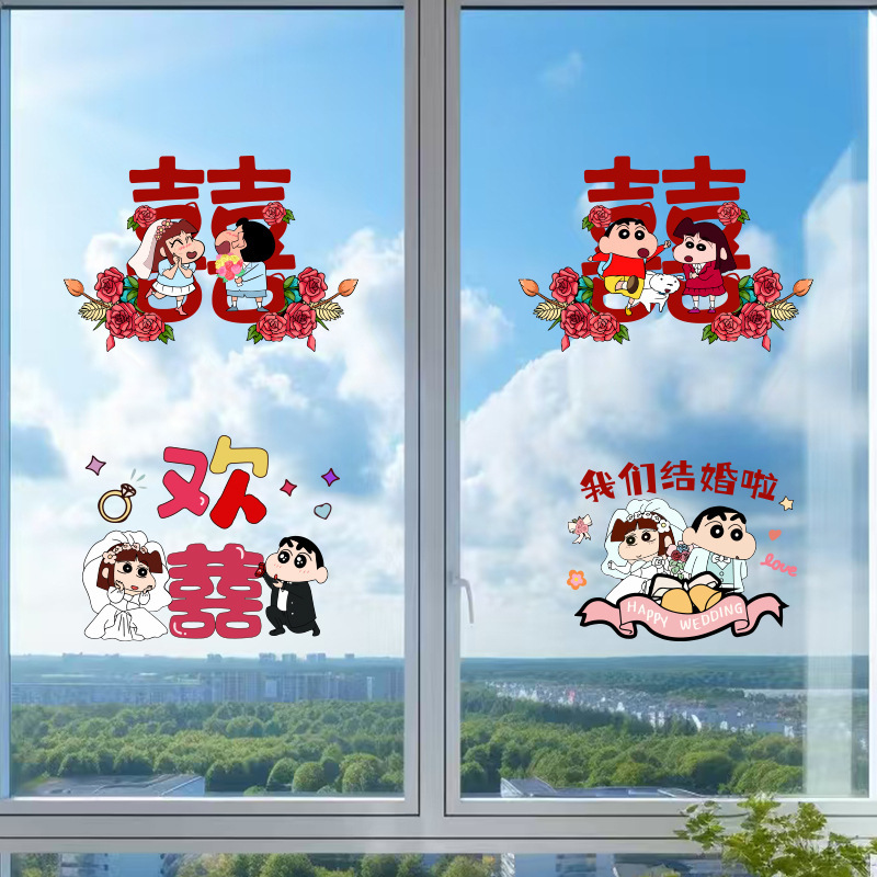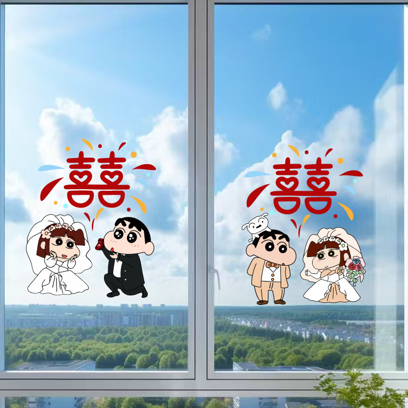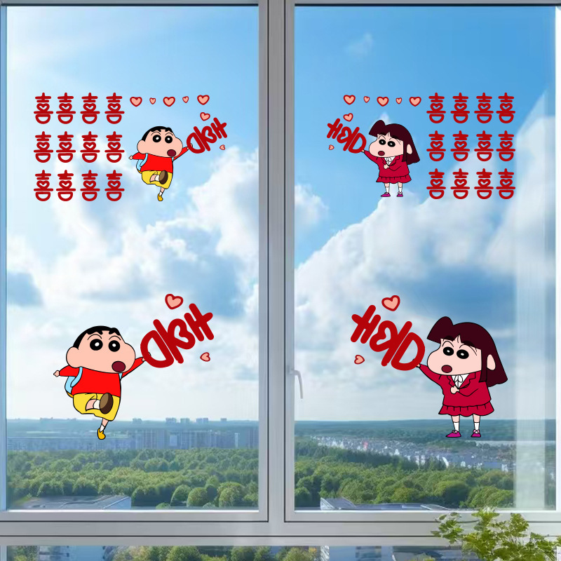 crayon xiaoxin chinese character xi electrostatic sticker 4 pack