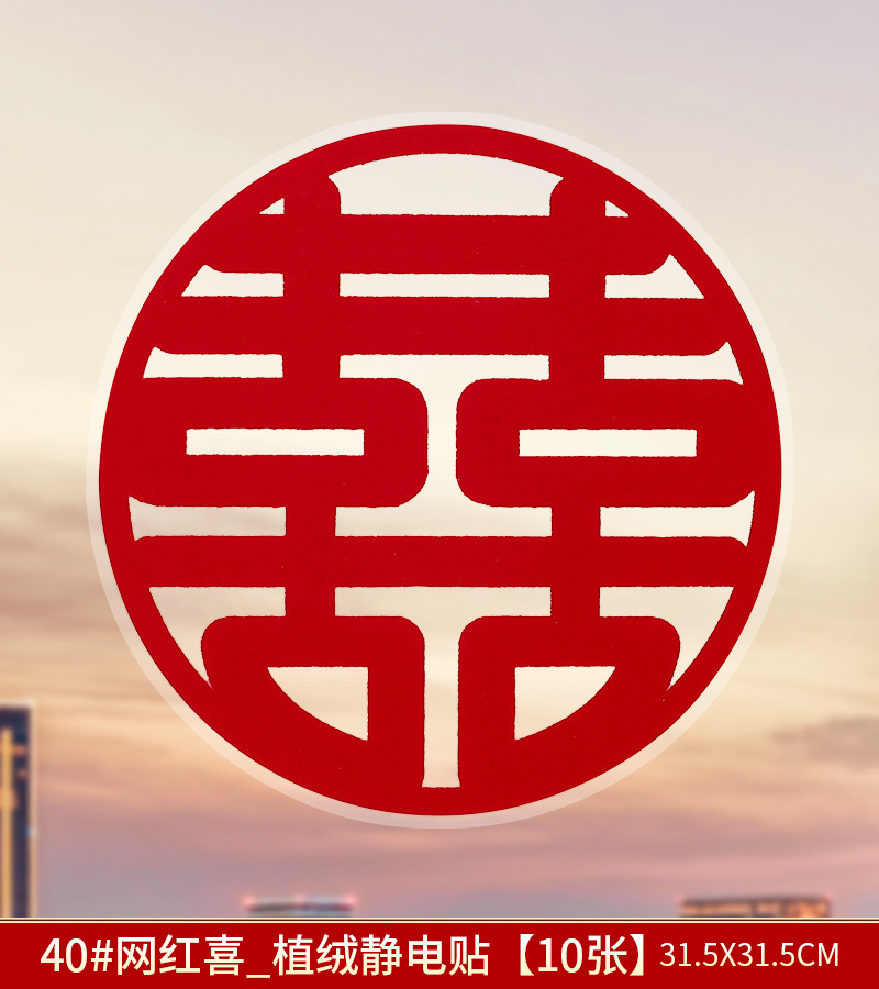 40# square double happiness_flocking static sticker [10 sheets]]