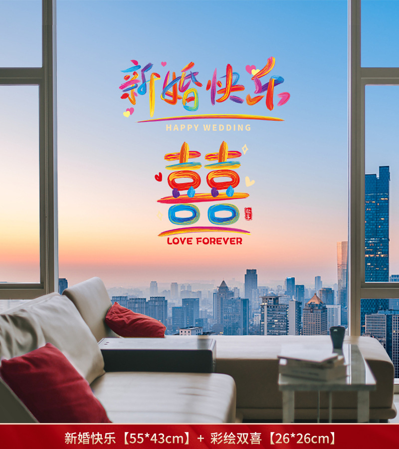 20# square double happiness_flocking static sticker [10 sheets]]