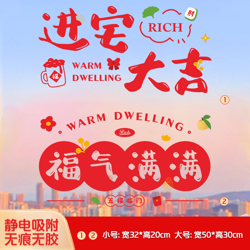 [auspicious in entering residence + full of blessings] horizontal version-static sticker [large size]]