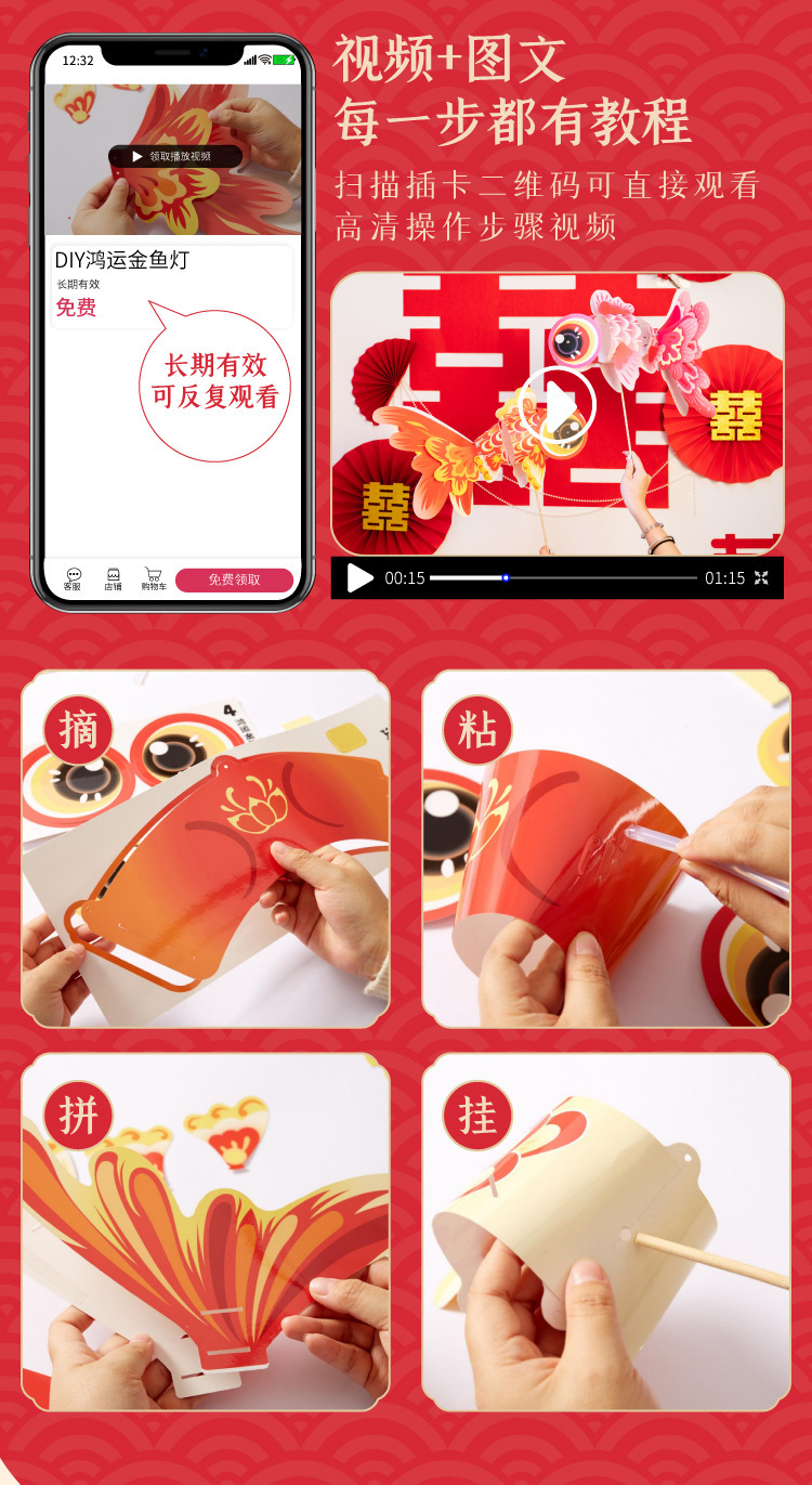 diy hongyun goldfish lamp (paper type)-lucky red goldfish