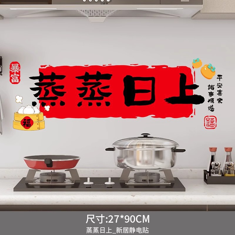 kitchen static sticker [steaming day] glue-free-water spray sticky plaster-the whole piece is not spliced