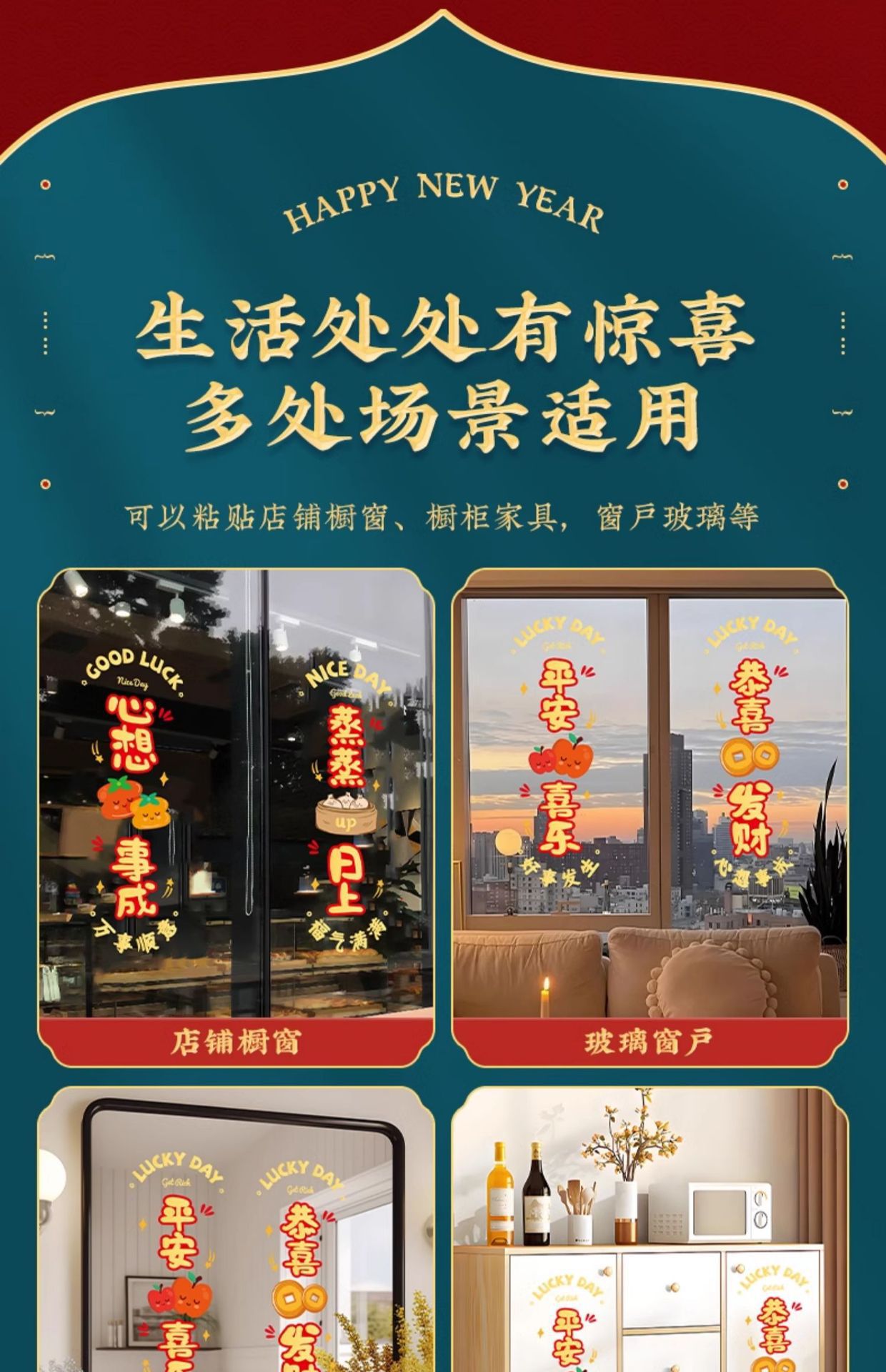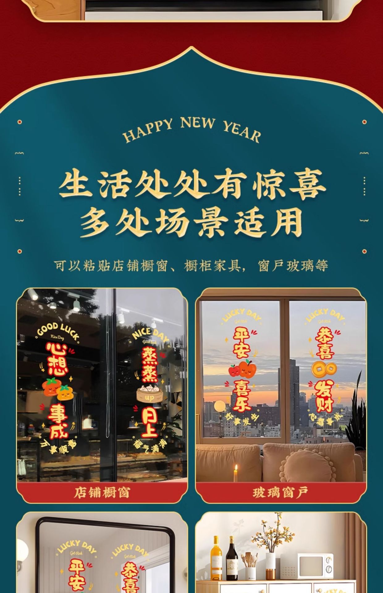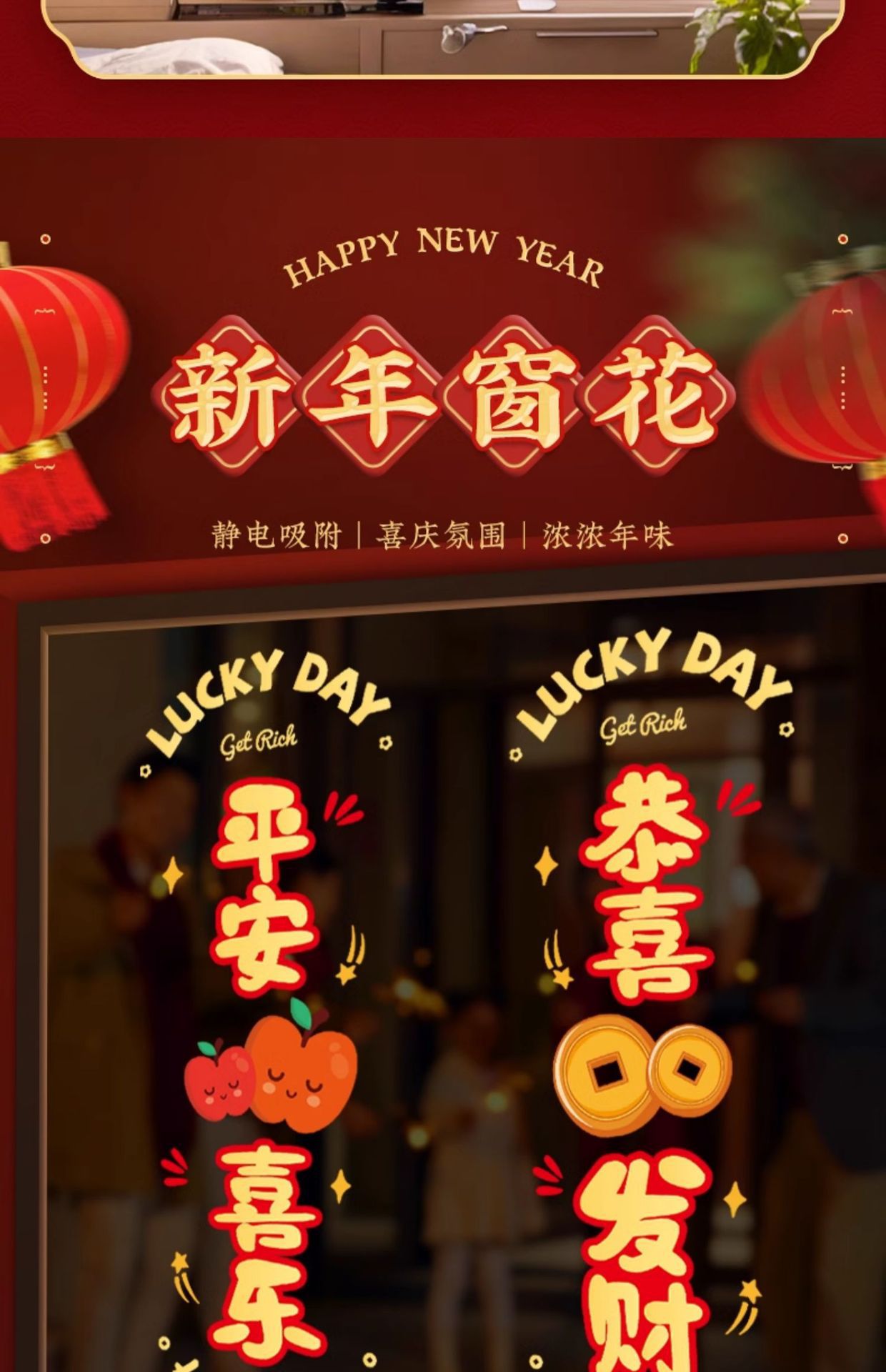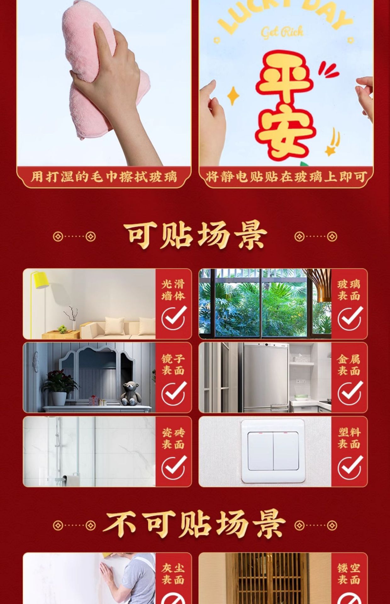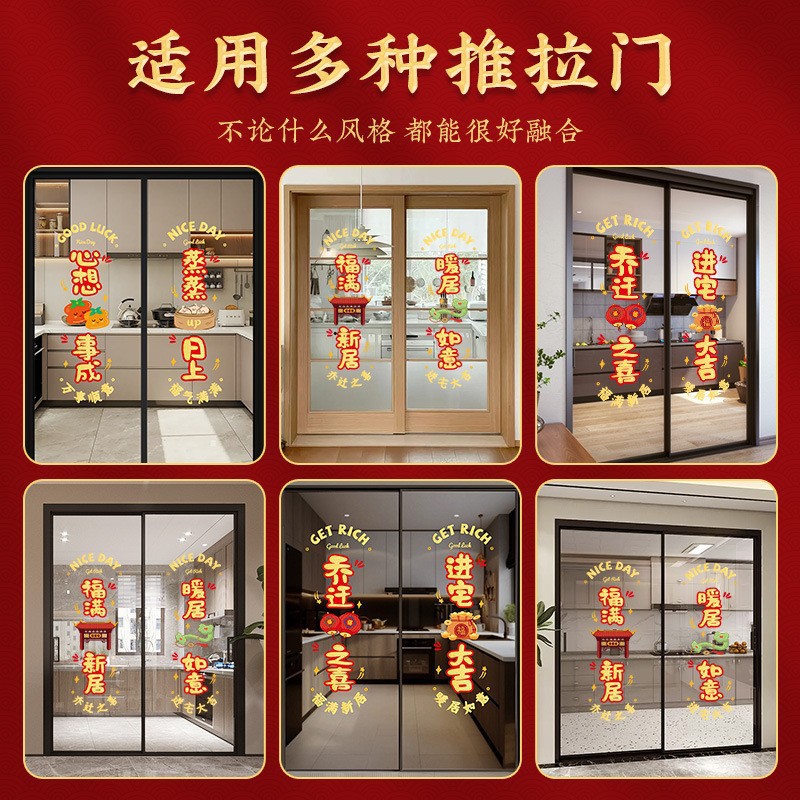 static sticker [fu man new home + warm home ruyi] glue-free-water spray sticky plaster-the whole piece is not spliced