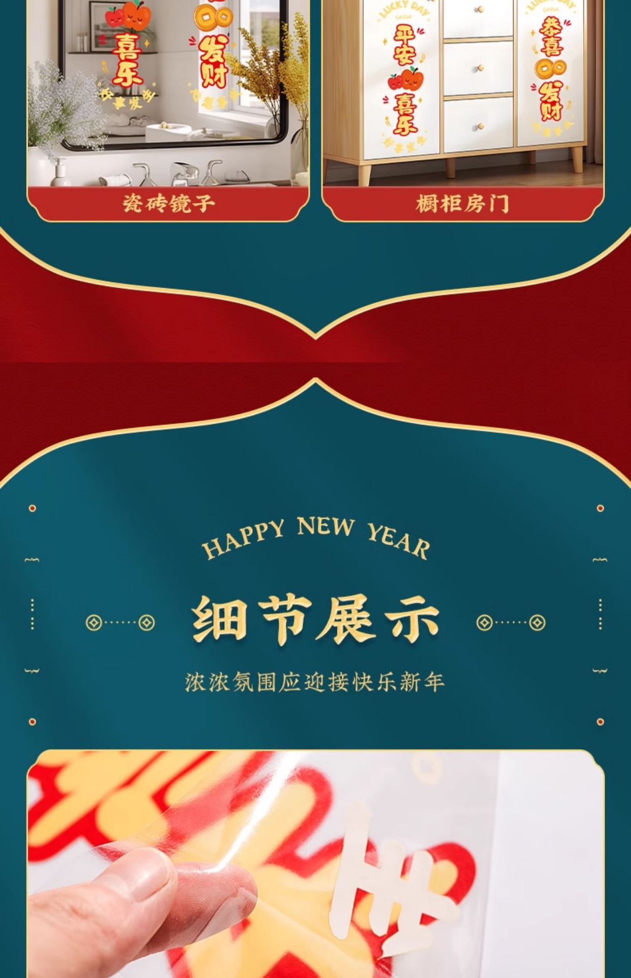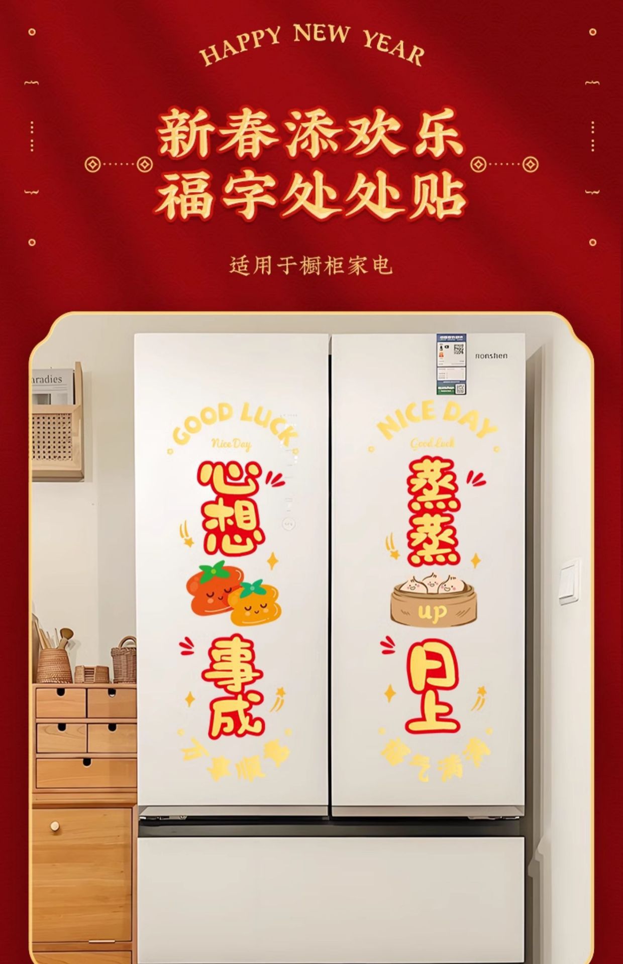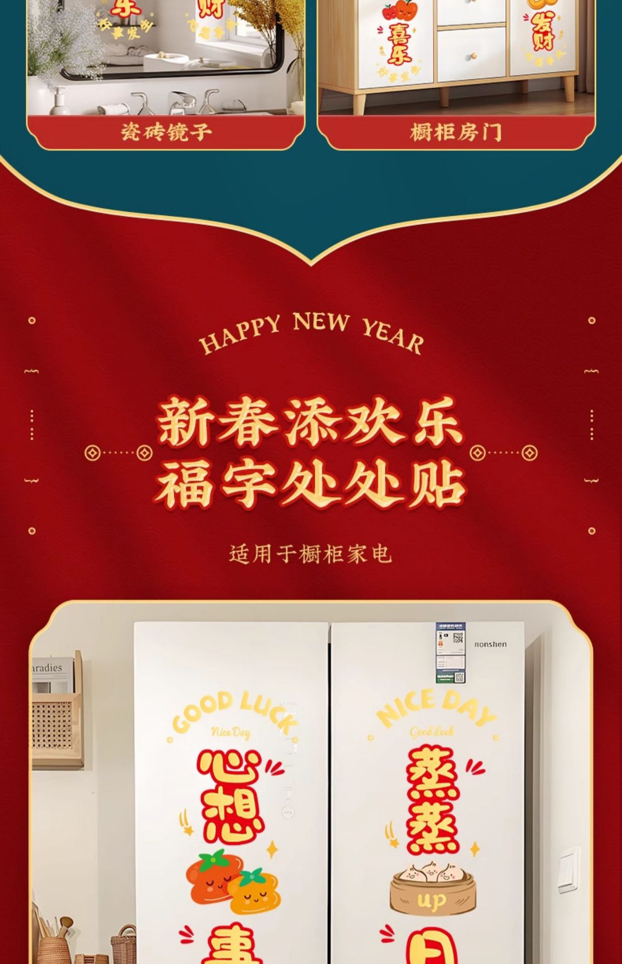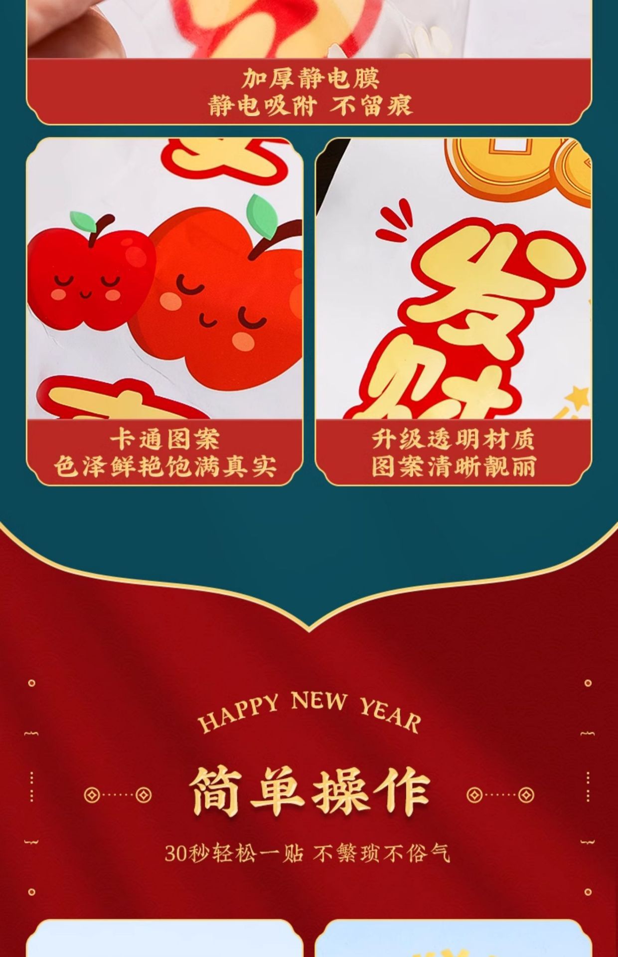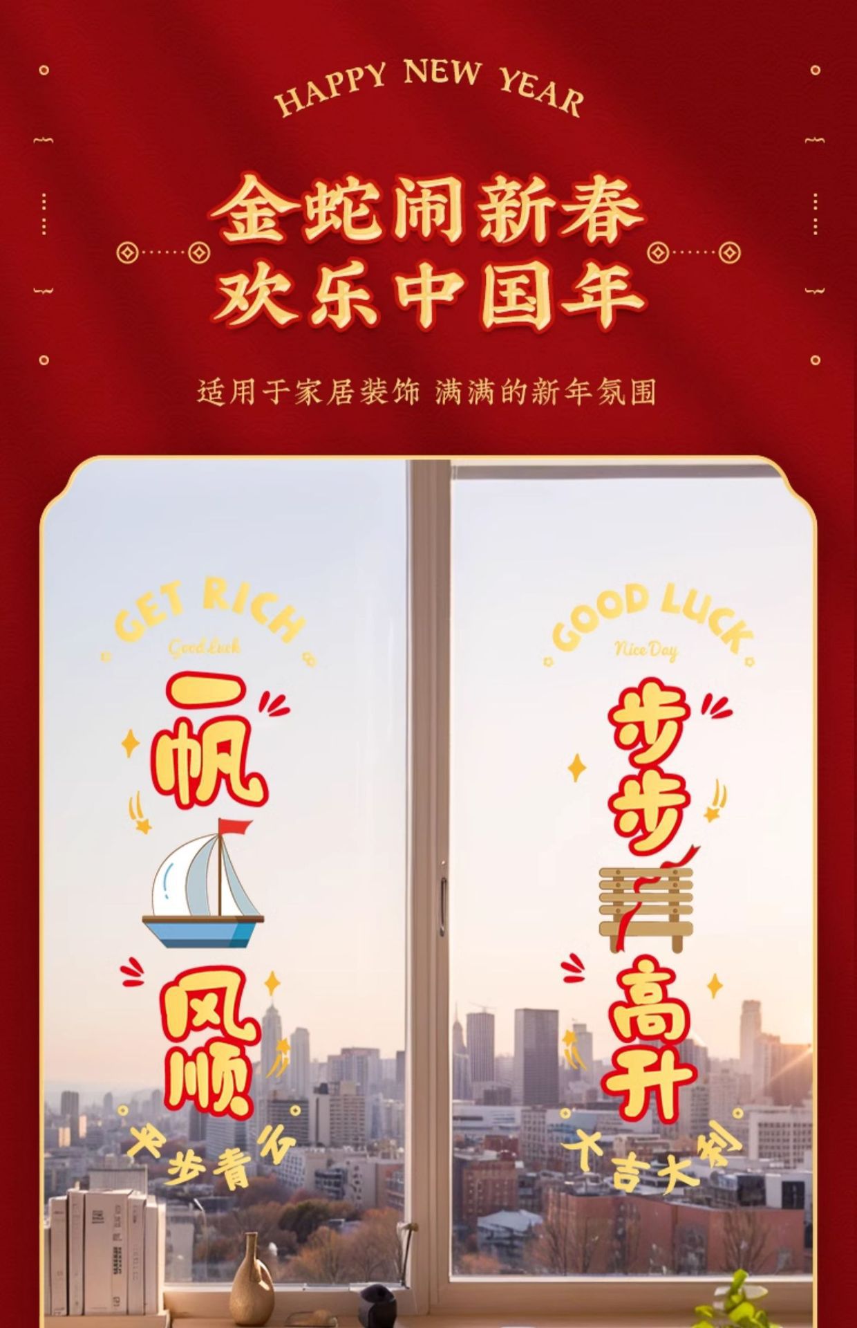 static sticker [fu man new home + warm home ruyi] glue-free-water spray sticky plaster-the whole piece is not spliced