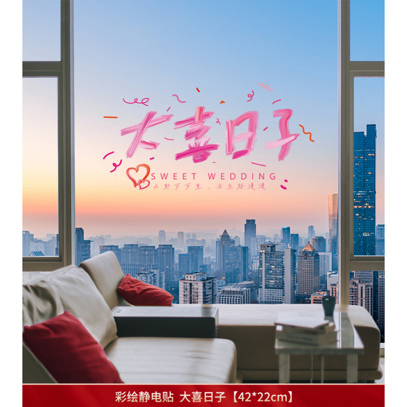 20# square double happiness_flocking static sticker [10 sheets]]
