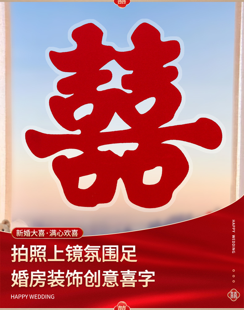 40# square double happiness_flocking static sticker [10 sheets]]