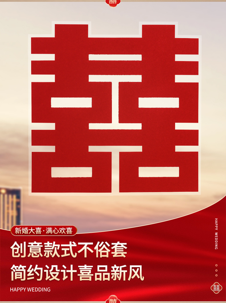 flocking static sticker (including corners) [dragon and phoenix double happiness]]