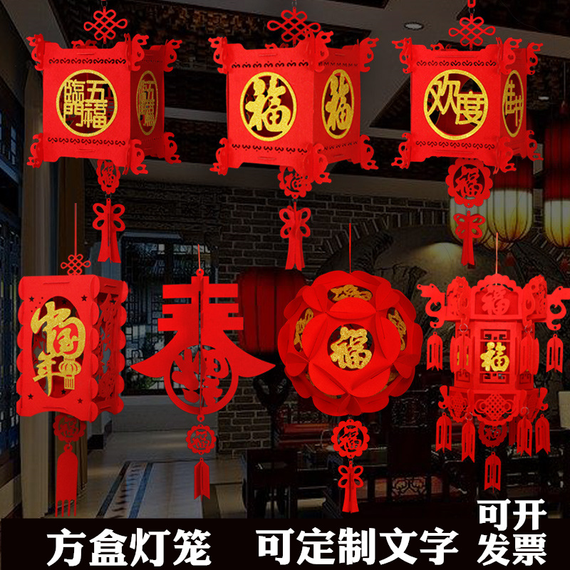 red three-dimensional square lantern