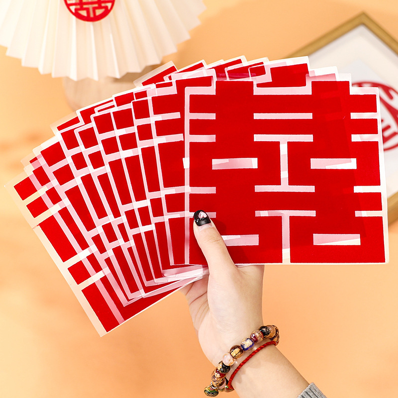 20# square double happiness_flocking static sticker [10 sheets]]