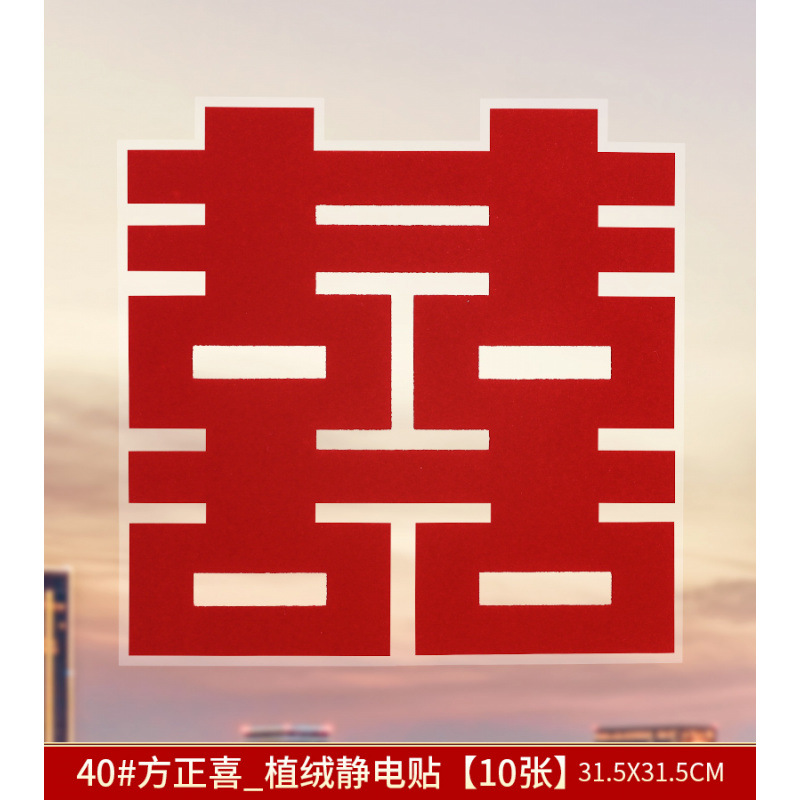 40# square double happiness_flocking static sticker [10 sheets]]