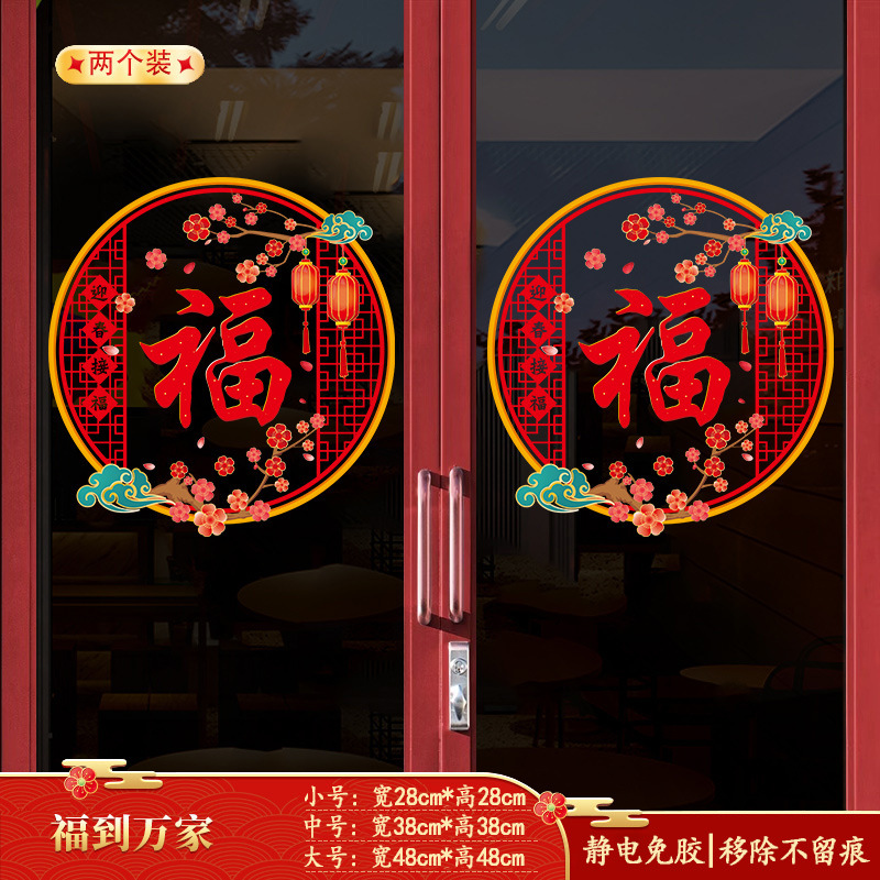 lucky word door sticker new year window flower paste 2025 snake year glass stickers chinese new year decorations arrangement static sticker new year pictures