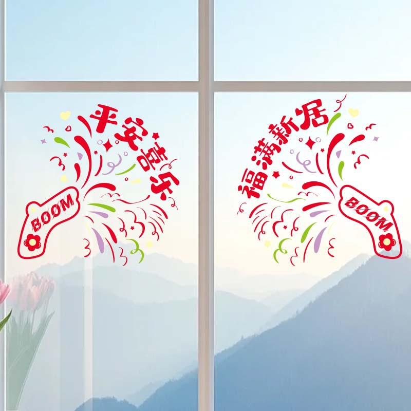 xiao fireworks display static sticker (ping an xi le + fu man new home) 1 pair 150g