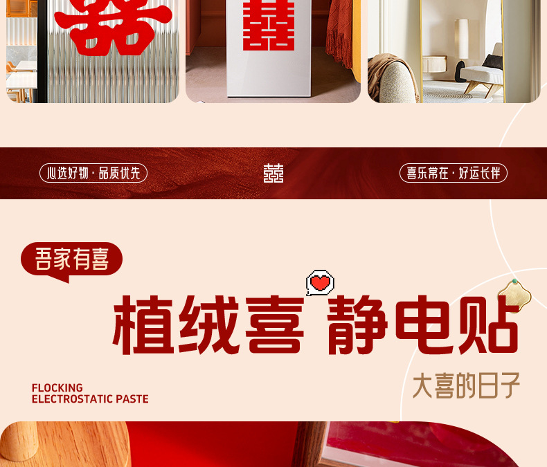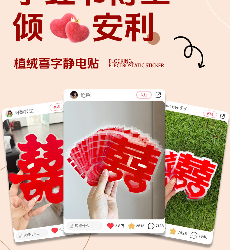 | flocking xi decorations static sticker (applicable to all scenarios in the whole house) | CN¥ 5.39 | 15 piece available |