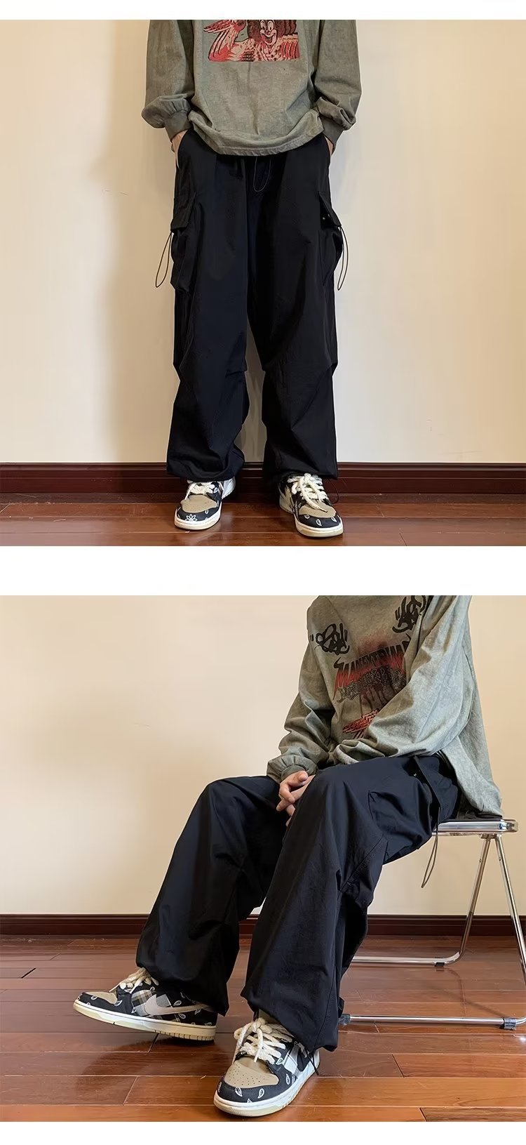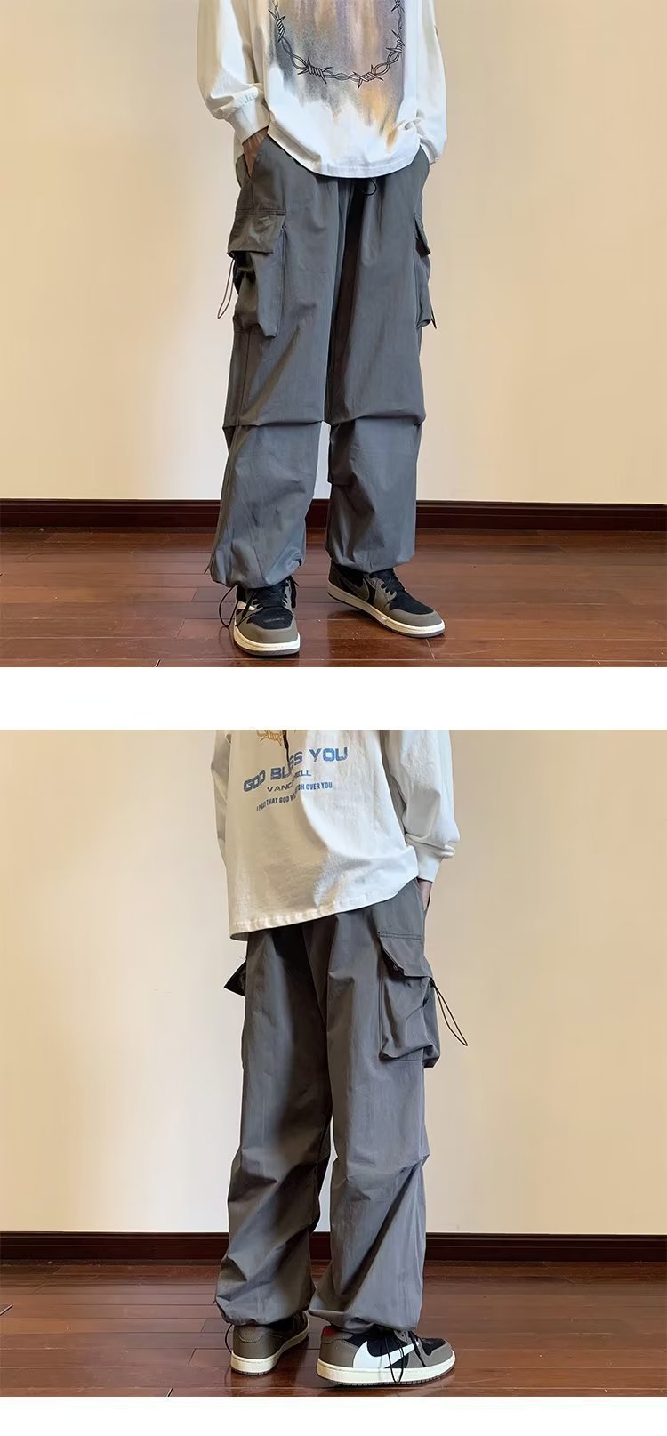 cross-border foreign trade japanese casual pants men's high street fashion brand ins loose straight cargo pants couple sports tactical pants