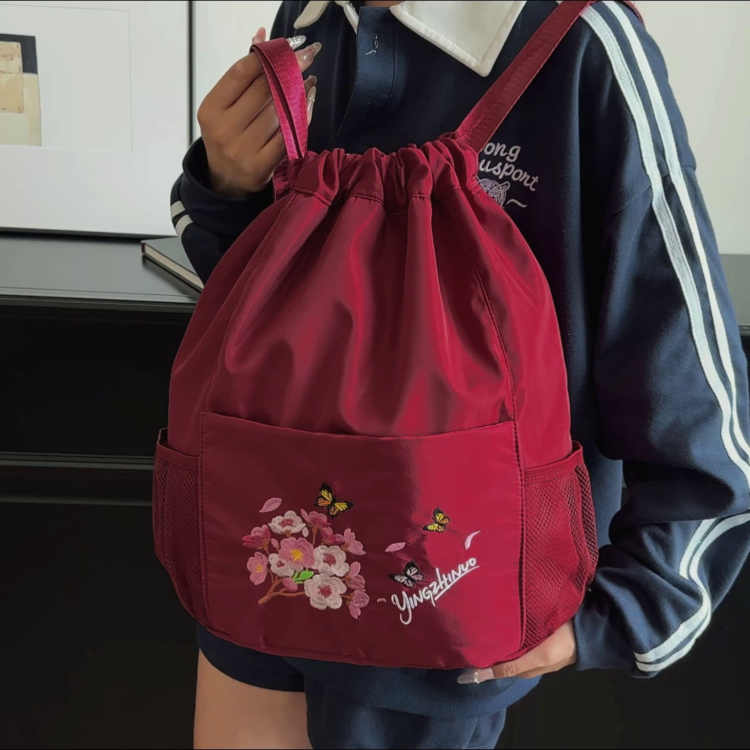 storage backpack drawstring backpack large capacity drawstring bag good-looking training bag embroidered travel bag