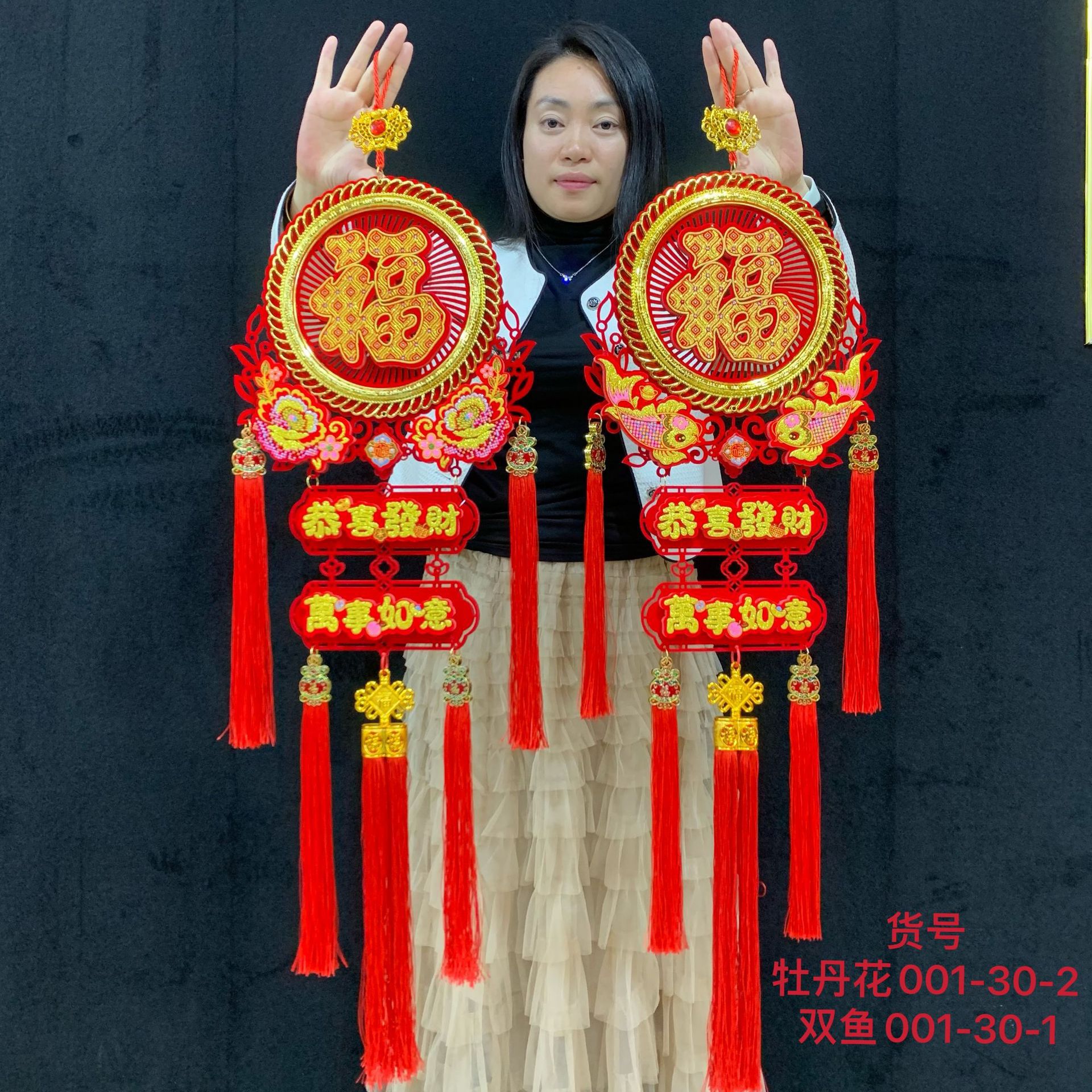 (peony 001-30-2) round blessing three-piece pendant 1