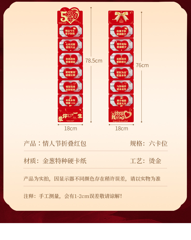 520 i love you 6 card positions (high-grade folding gilding)
